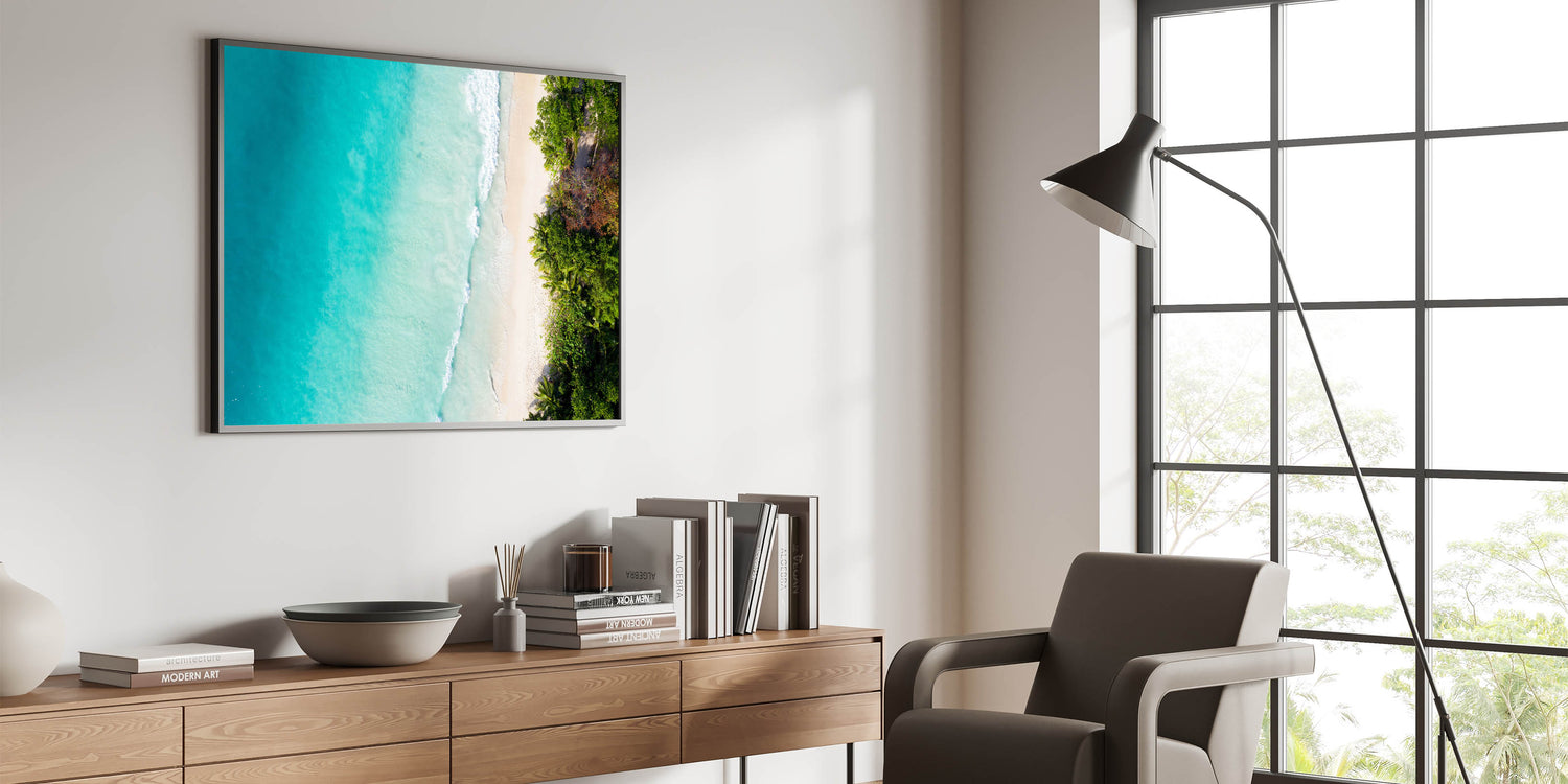 Let this peaceful aerial view of Seychelles transform your room into a serene island escape. Perfect for lovers of coastal landscapes and tropical vibes, this artwork is a stunning addition to any living room, bedroom, or office decor.