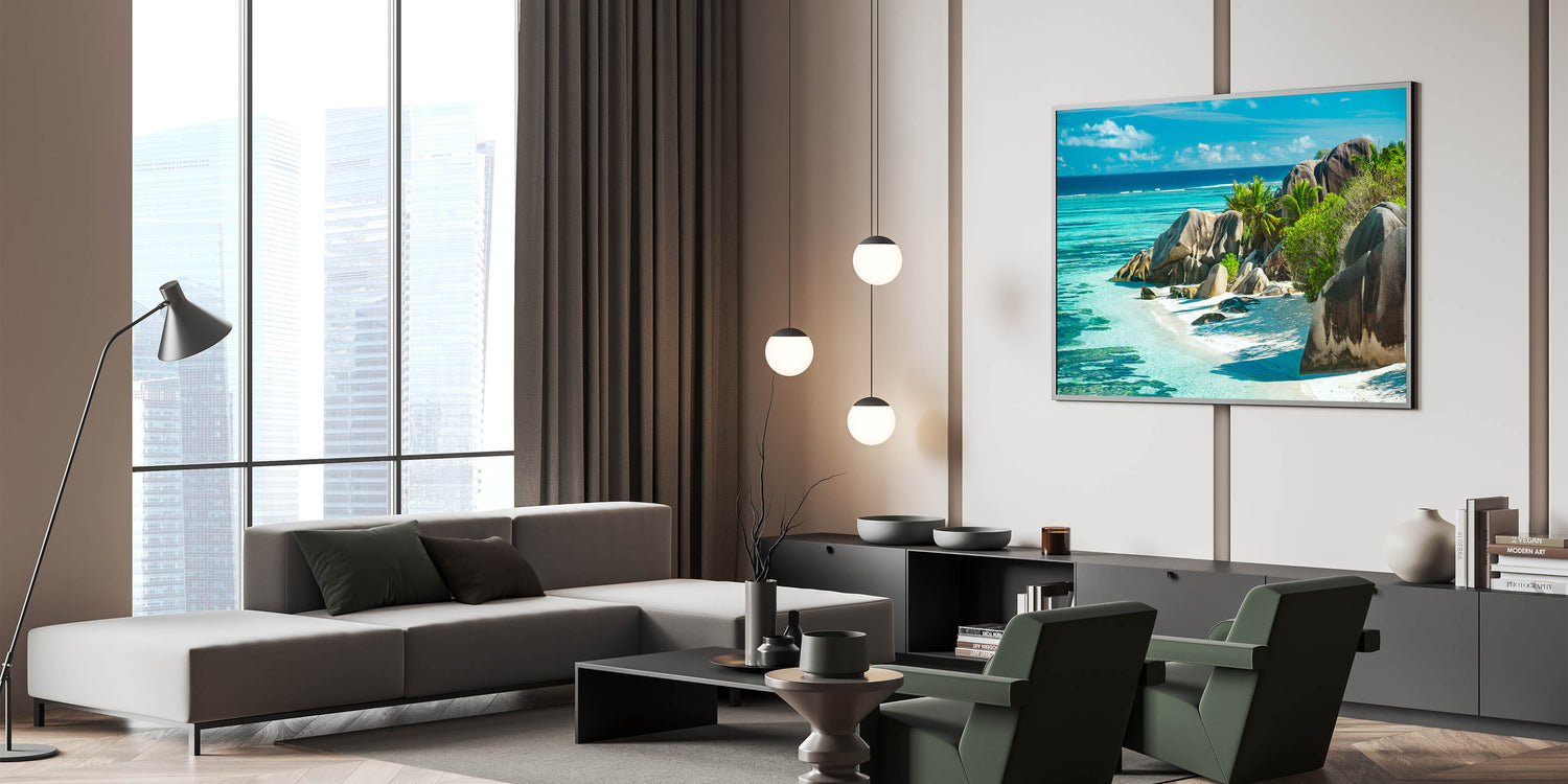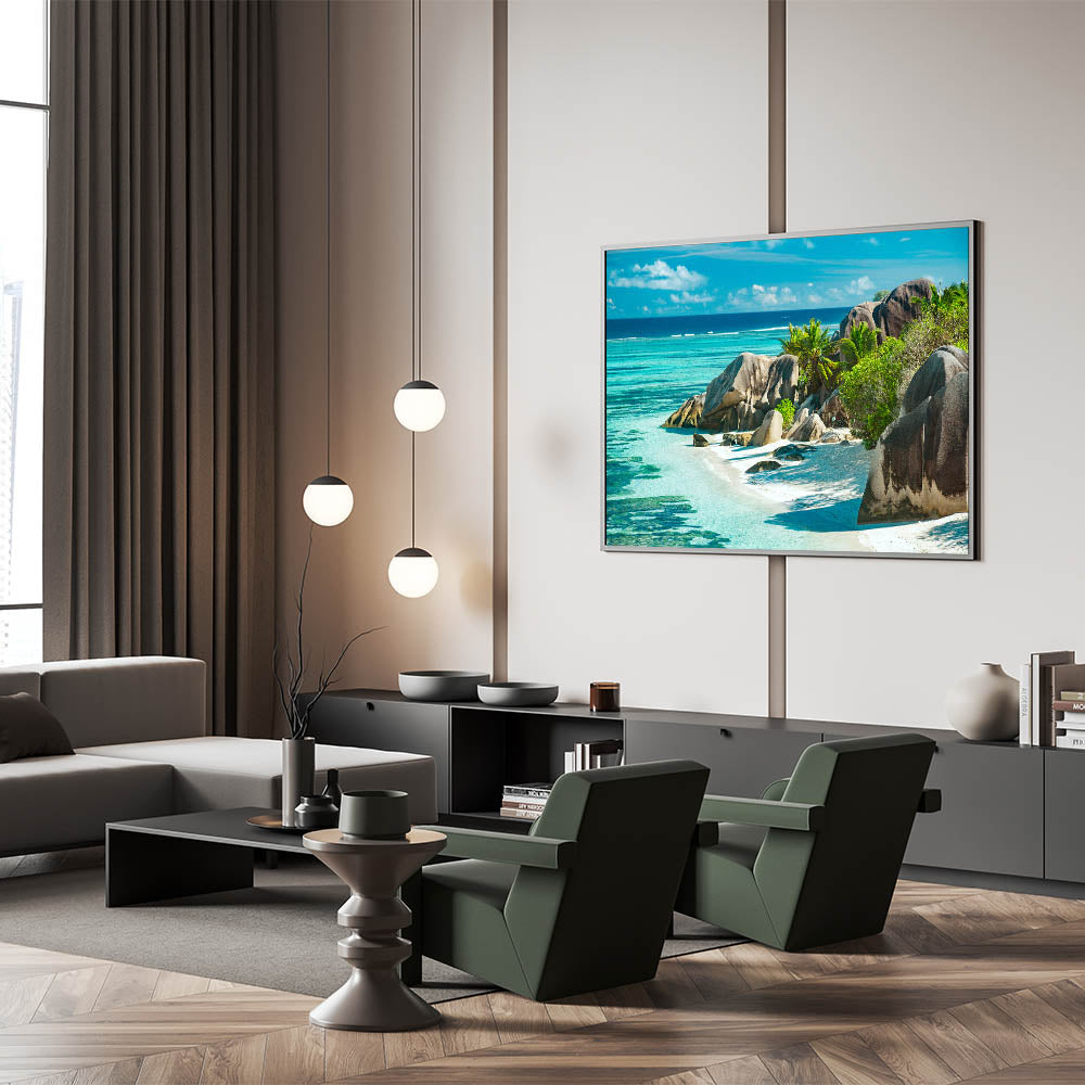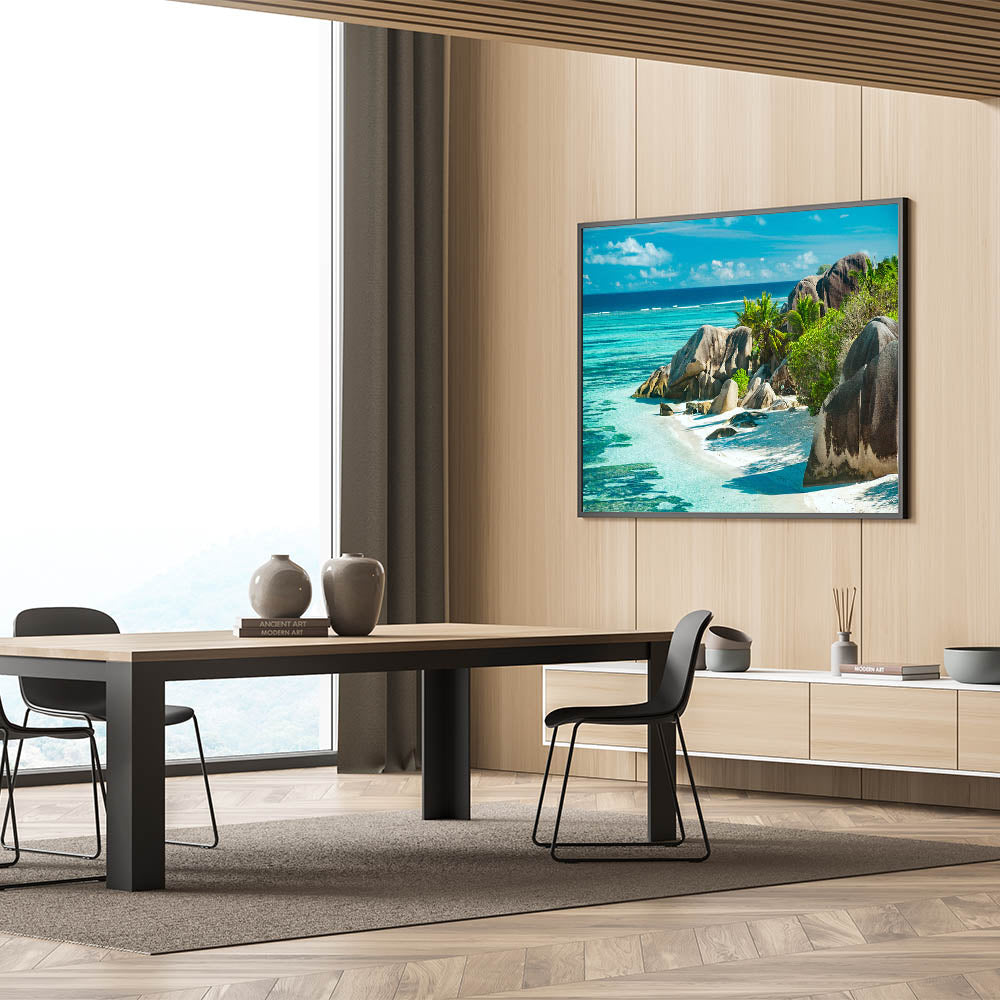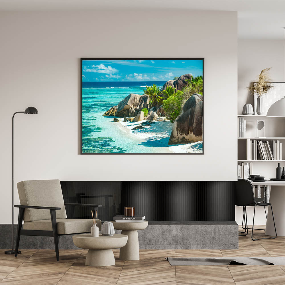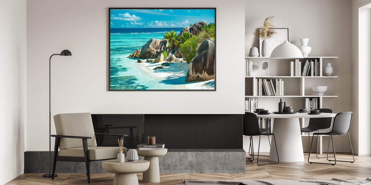 Transform your home with the breathtaking beauty of Seychelles' coastline. This stunning beach wall art captures the serene turquoise waters and impressive rock formations, making it a perfect addition for anyone who loves tropical island decor and scenic coastal views.