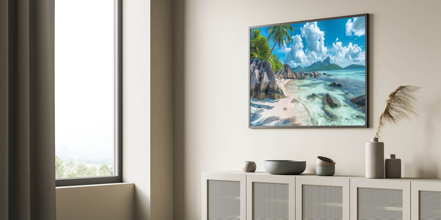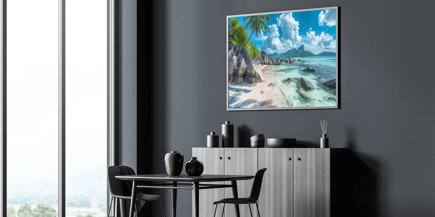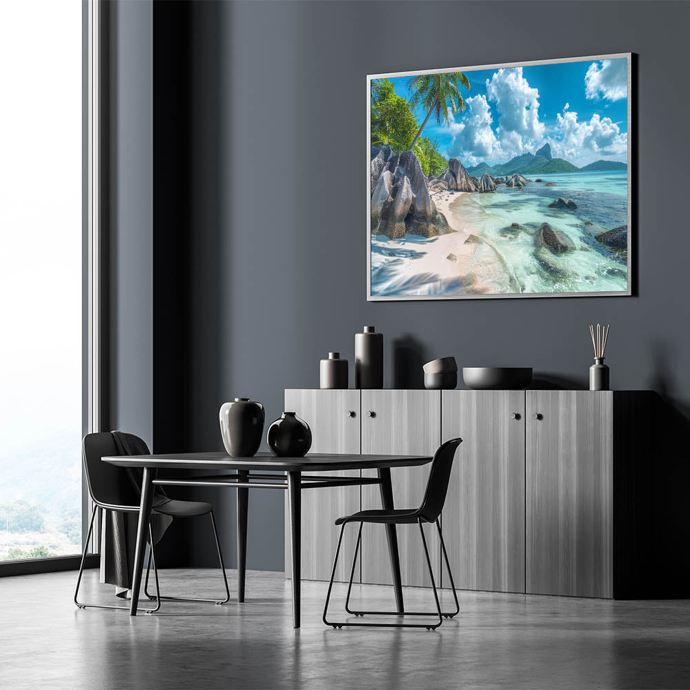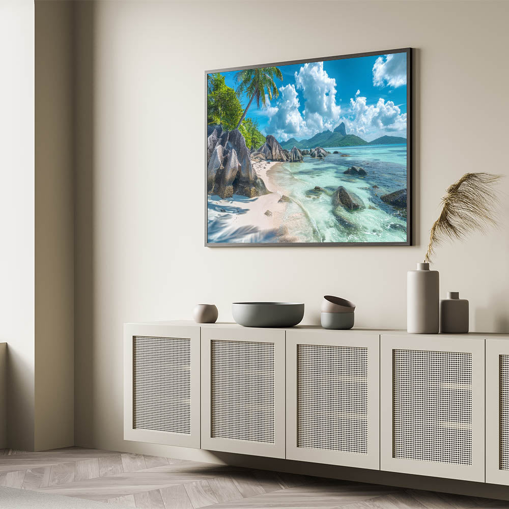 - High-quality reproduction of Seychelles scenery art, ideal for bringing a touch of island paradise wall art into your space.