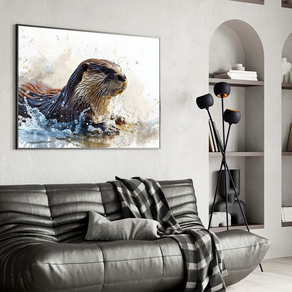 Splashing Sea Otter Wall Art - Vibrant Marine Life Canvas & Framed Prints