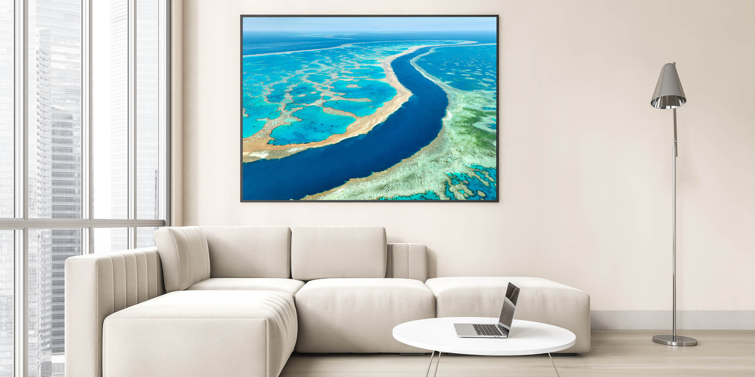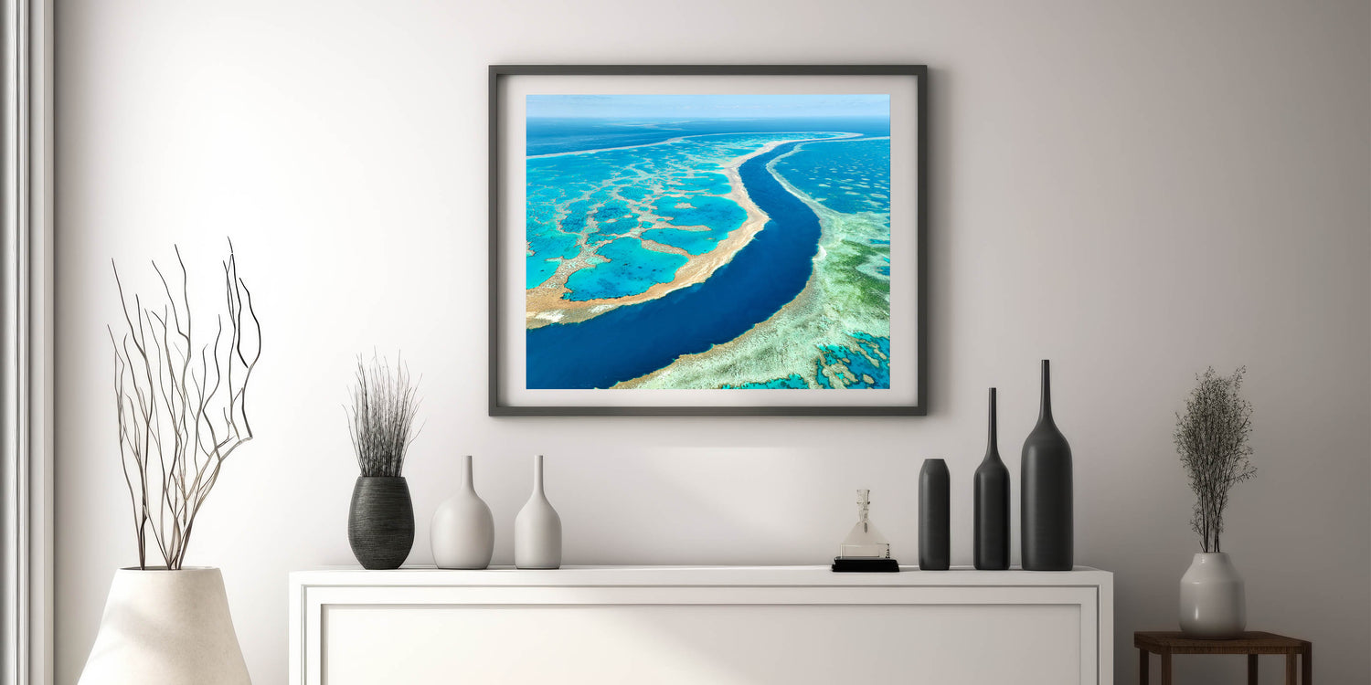 - Custom Great Barrier Reef art: Perfect for creating a serene, tropical feel in your home or office.