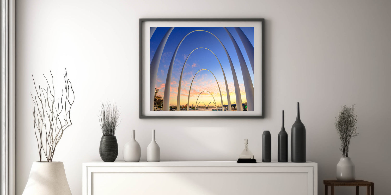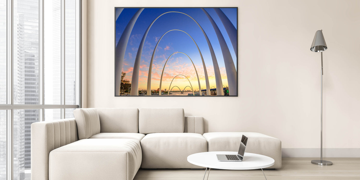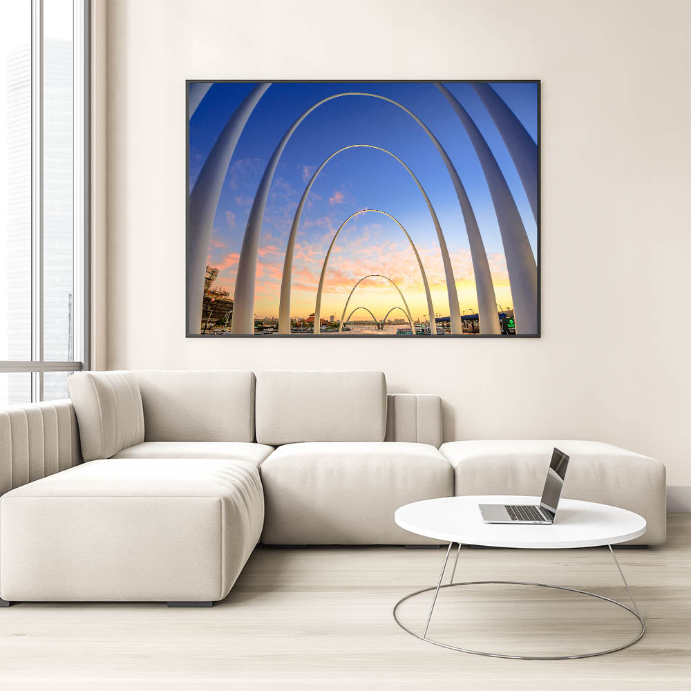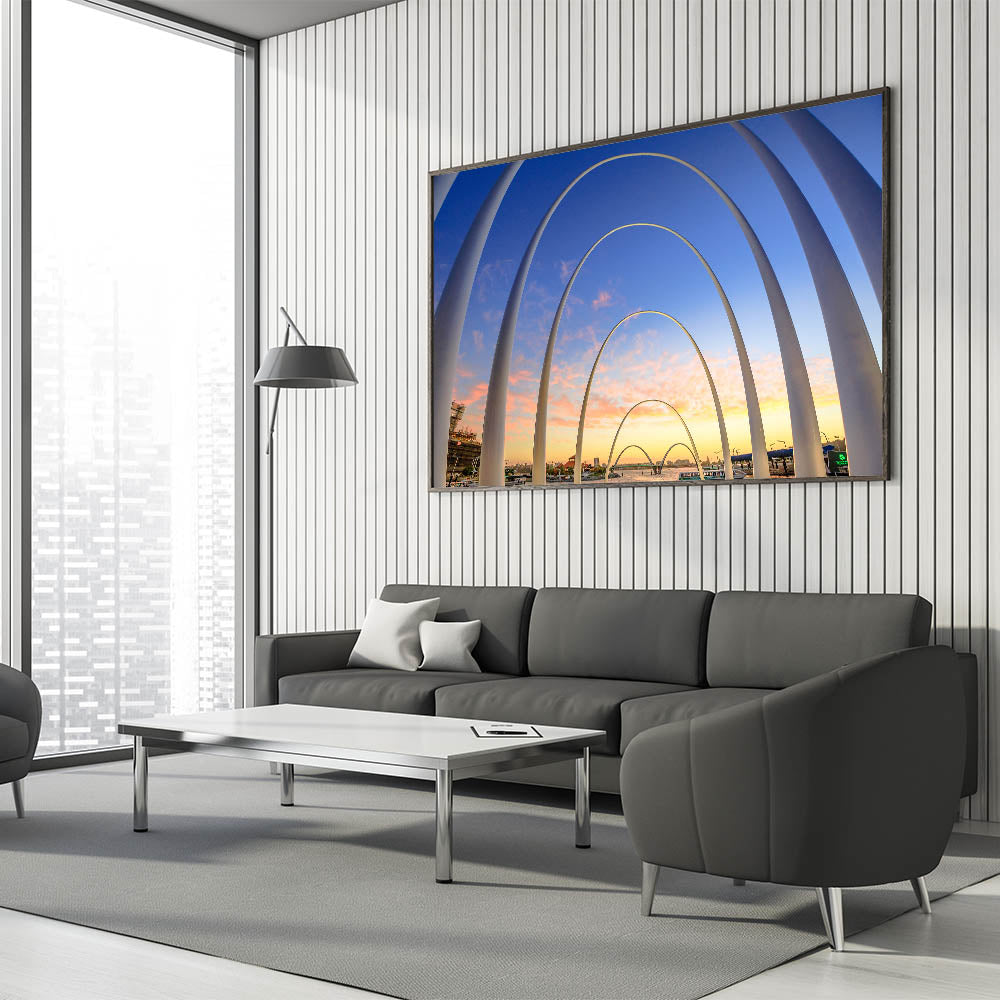 Introduce a touch of Australia to your home with this breathtaking Perth Cityscape wall art. Capturing the essence of the city's iconic arches and its stunning skyline, this artwork brings a perfect blend of modern architecture and natural beauty to your walls. Ideal for both contemporary and traditional spaces, it highlights the beauty of Western Australia.
