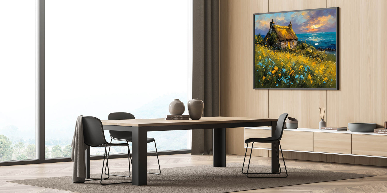 This sunset coastal cottage wall art is perfect for those who appreciate the beauty of nature and want to bring the serenity of the coast into their home. Whether displayed in a living room, bedroom, or hallway, it will create a peaceful and inviting environment in any space.