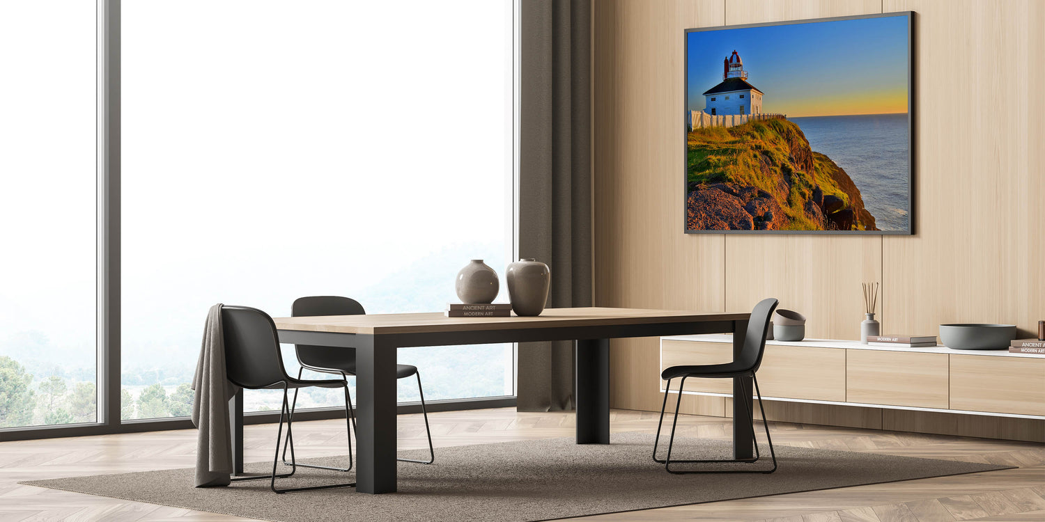Add this serene lighthouse scene to your decor, showcasing the peaceful beauty of Newfoundland’s coastline. Whether for your home or office, this wall art is sure to inspire a sense of calm and admiration.