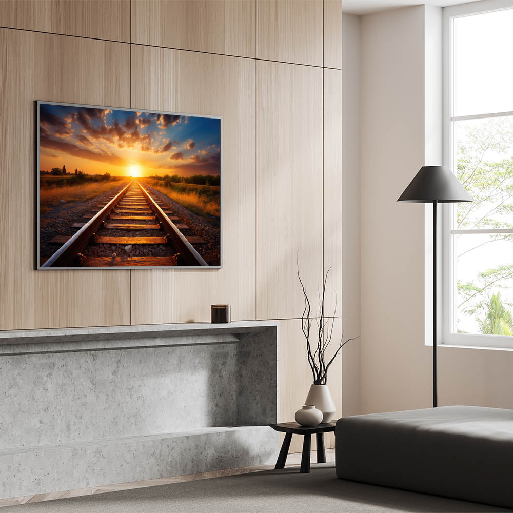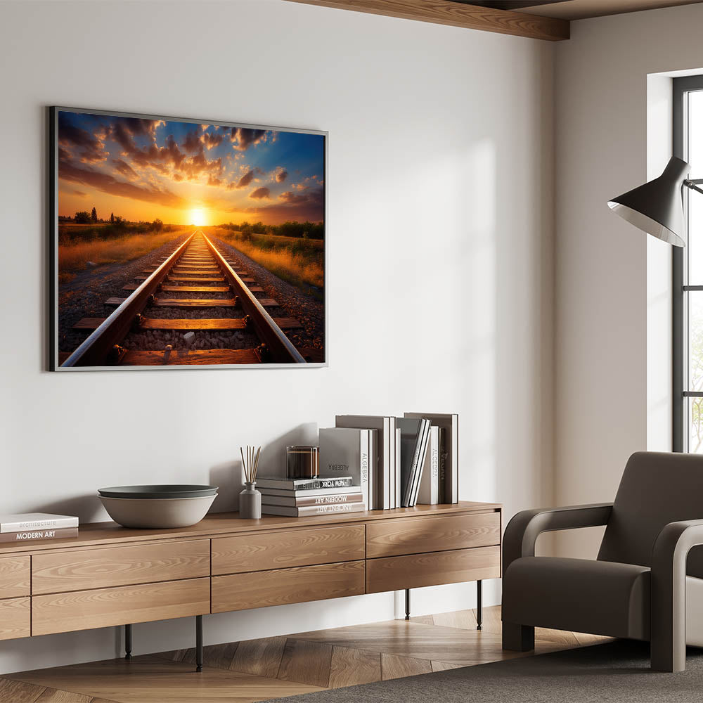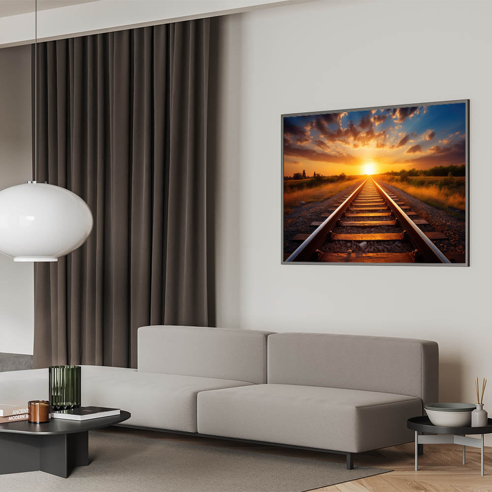 Sunset Railway Wall Art - Scenic Train Tracks in Vibrant Evening Light