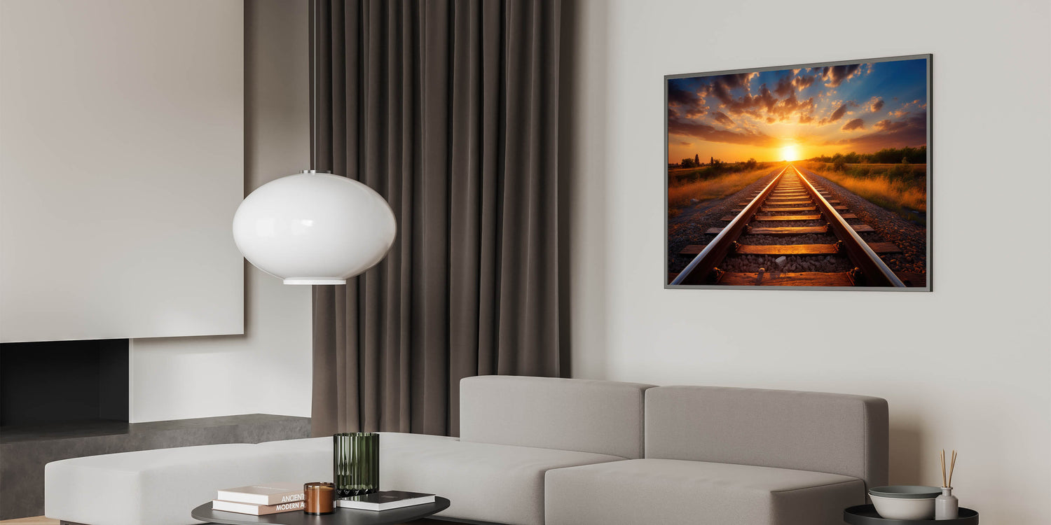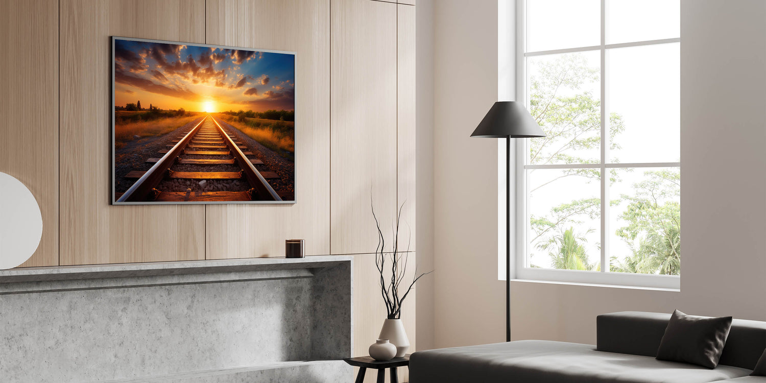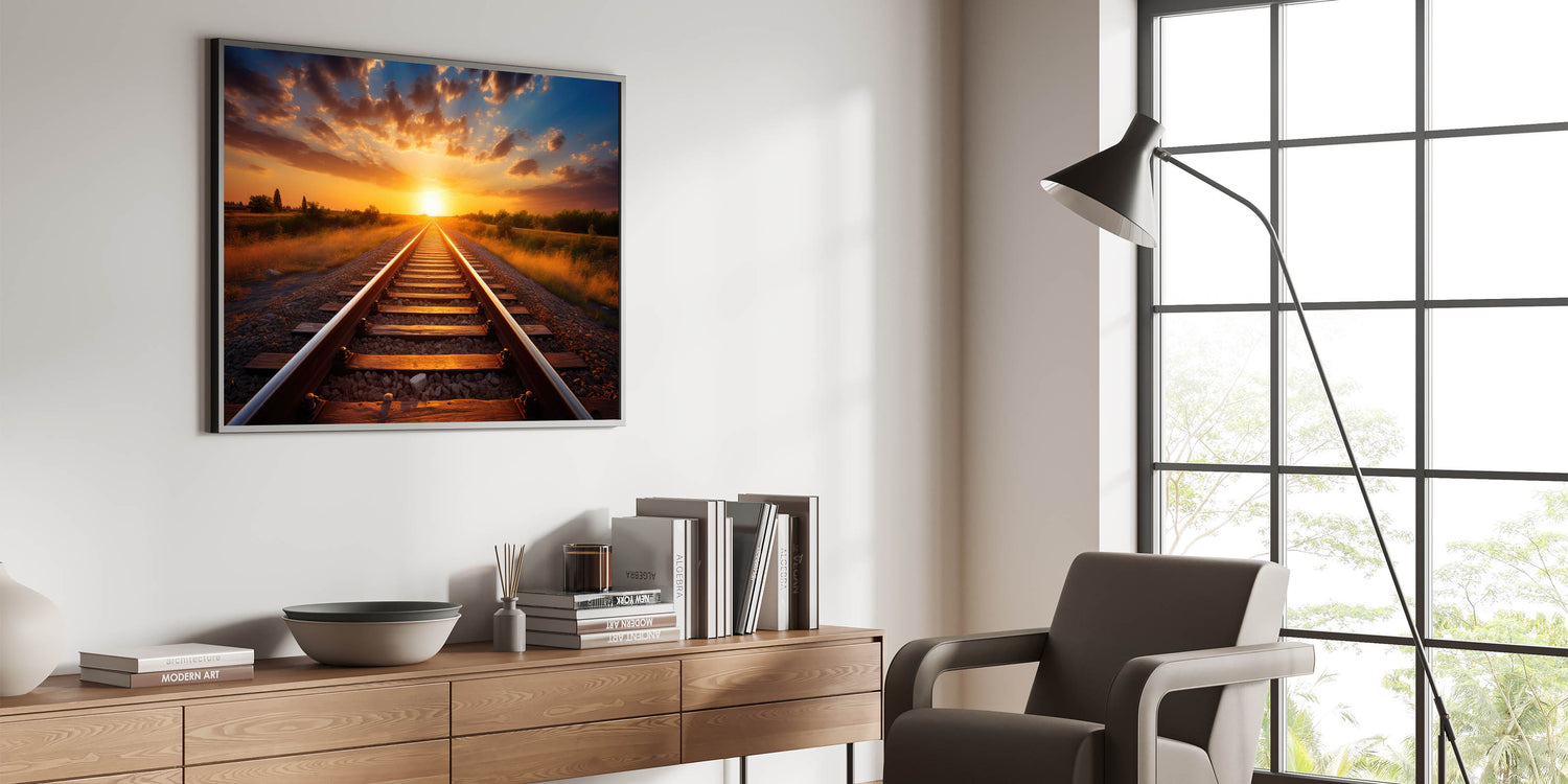 Sunset Railway Wall Art - Scenic Train Tracks in Vibrant Evening Light