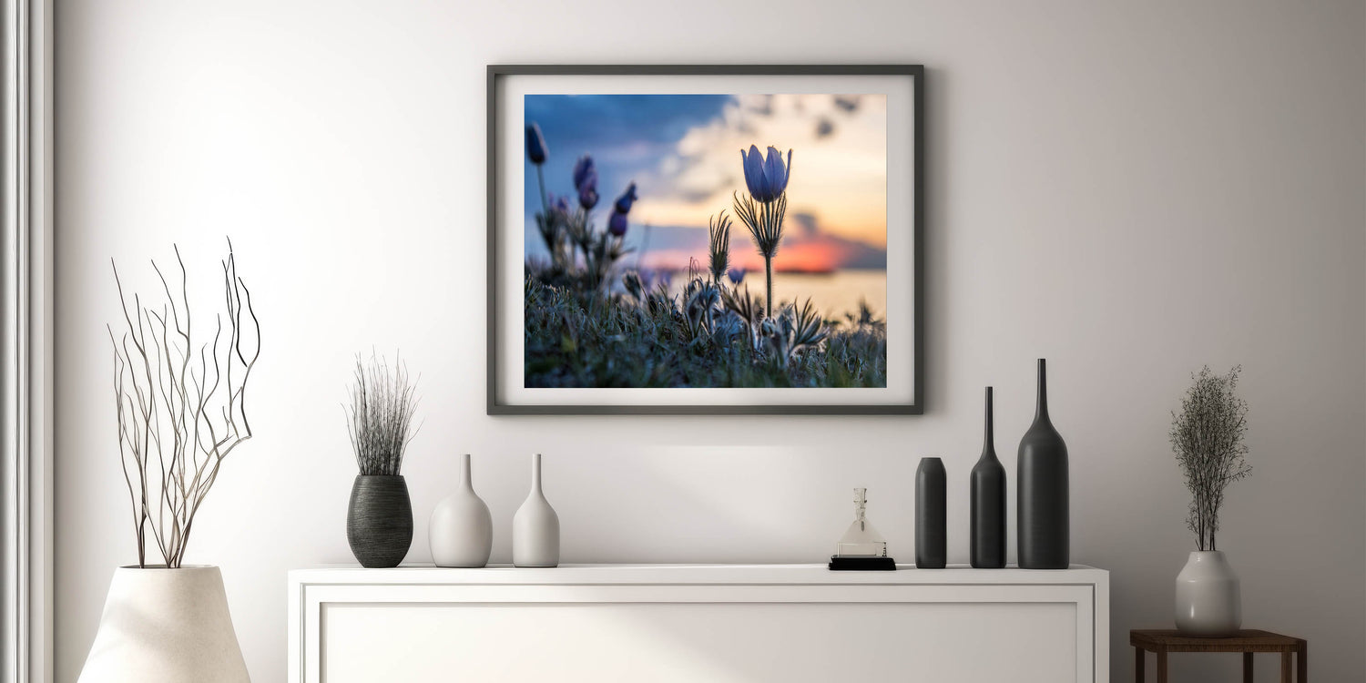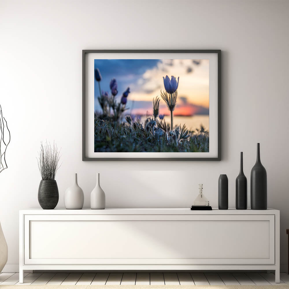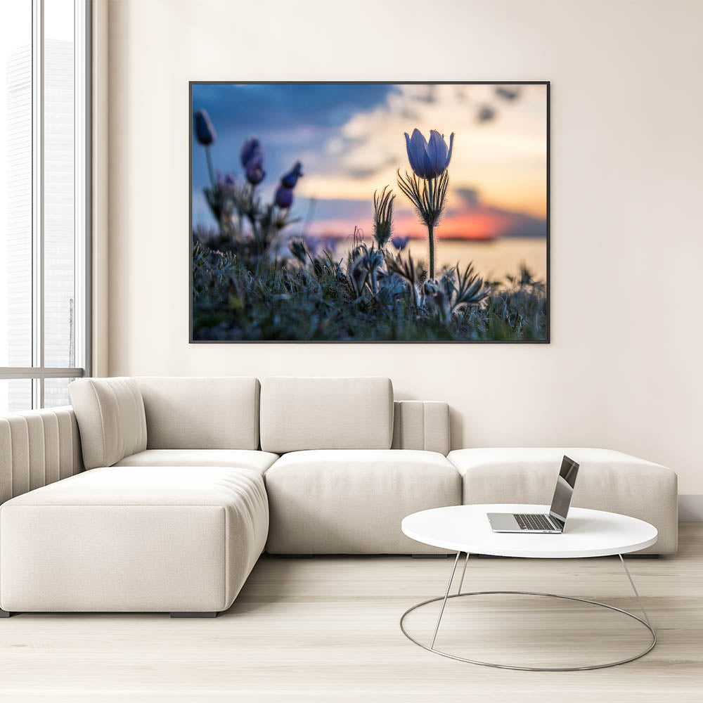 Embrace the tranquil beauty of Manitoba with this exquisite wall art capturing blooming wildflowers against the backdrop of a serene sunset. This piece brings the delicate harmony of nature into any space, showcasing the peaceful ambiance of Manitoba's natural landscapes. Perfect for nature enthusiasts and art lovers alike, this scenic artwork invites the serene beauty of the prairies into your home.