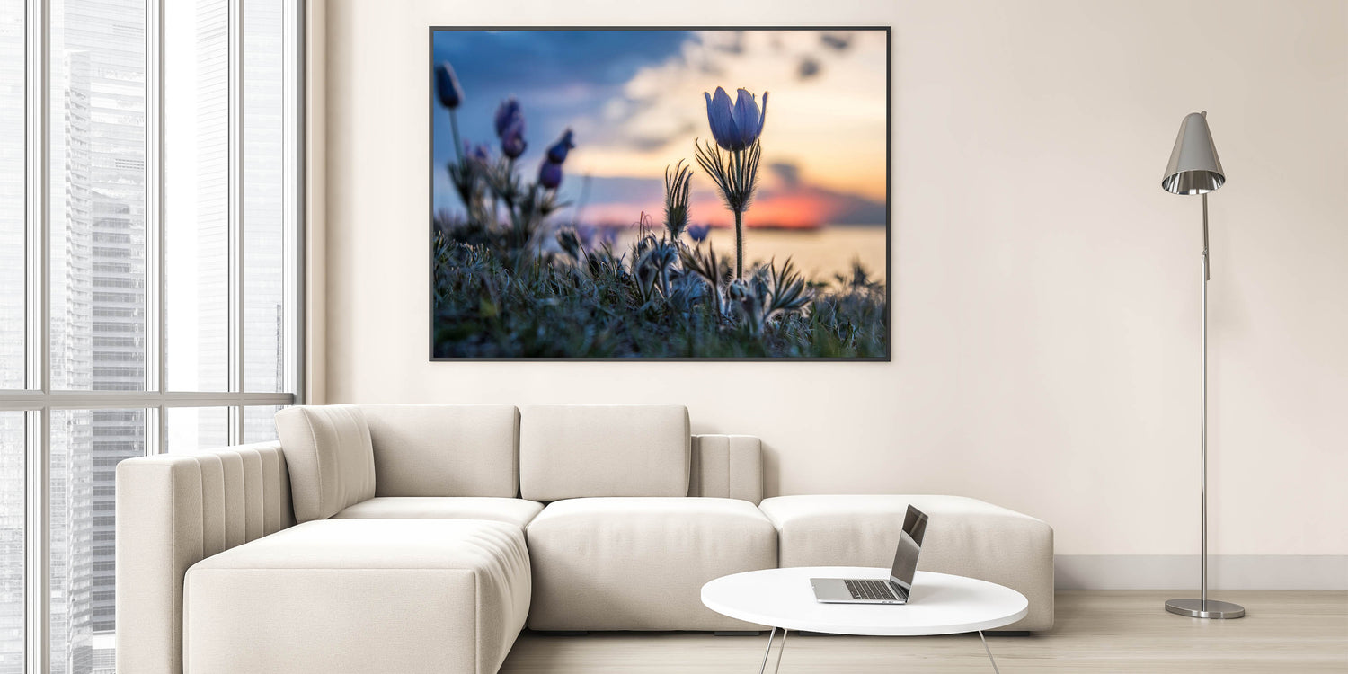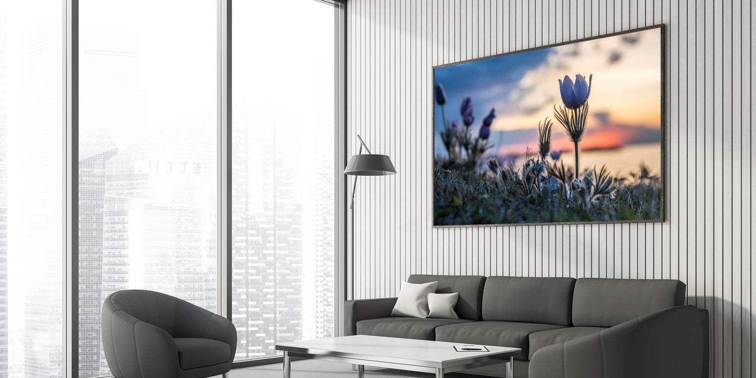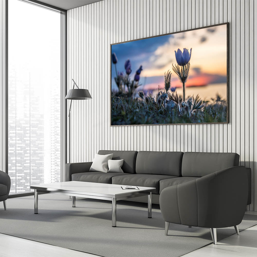 Embrace the tranquil beauty of Manitoba with this exquisite wall art capturing blooming wildflowers against the backdrop of a serene sunset. This piece brings the delicate harmony of nature into any space, showcasing the peaceful ambiance of Manitoba's natural landscapes. Perfect for nature enthusiasts and art lovers alike, this scenic artwork invites the serene beauty of the prairies into your home.