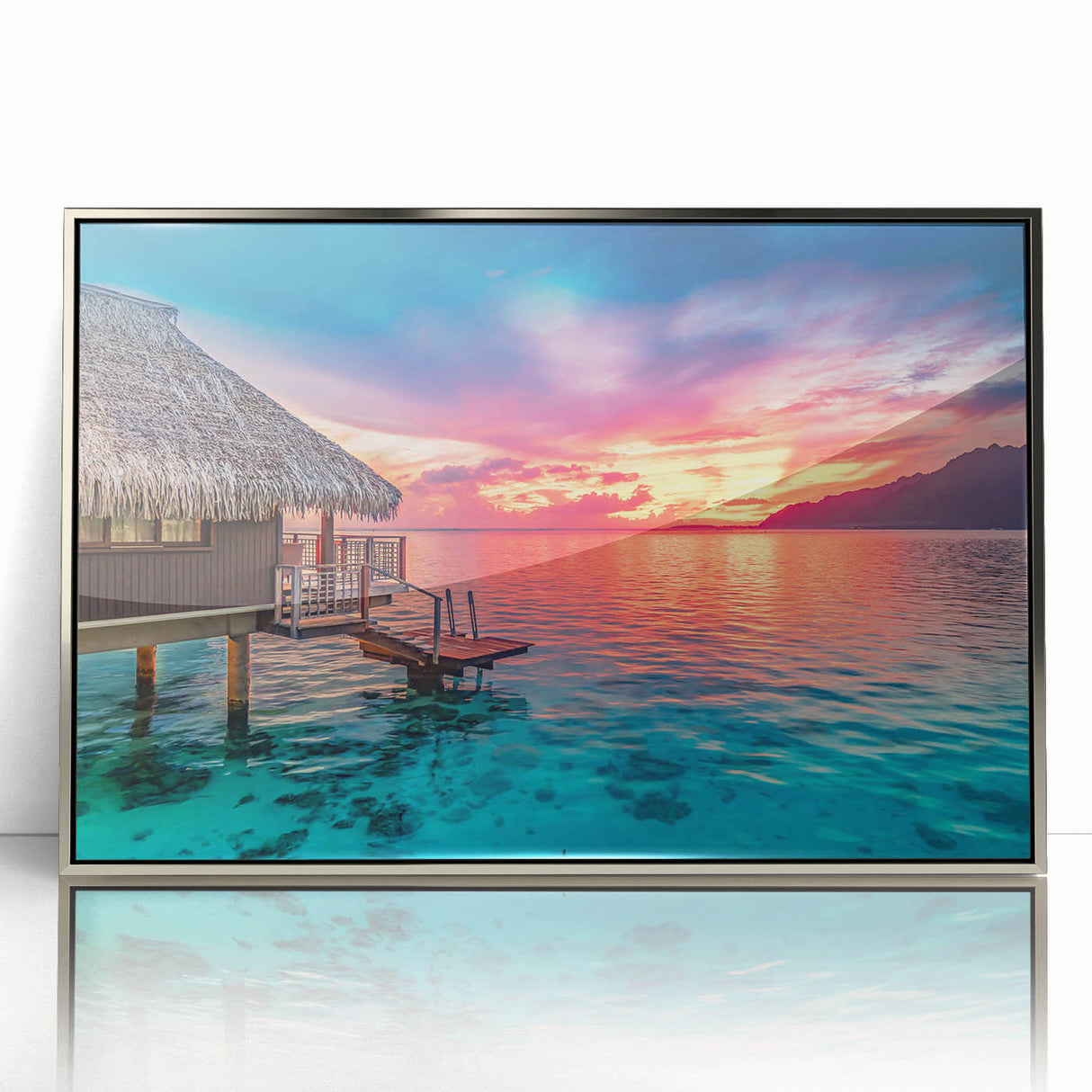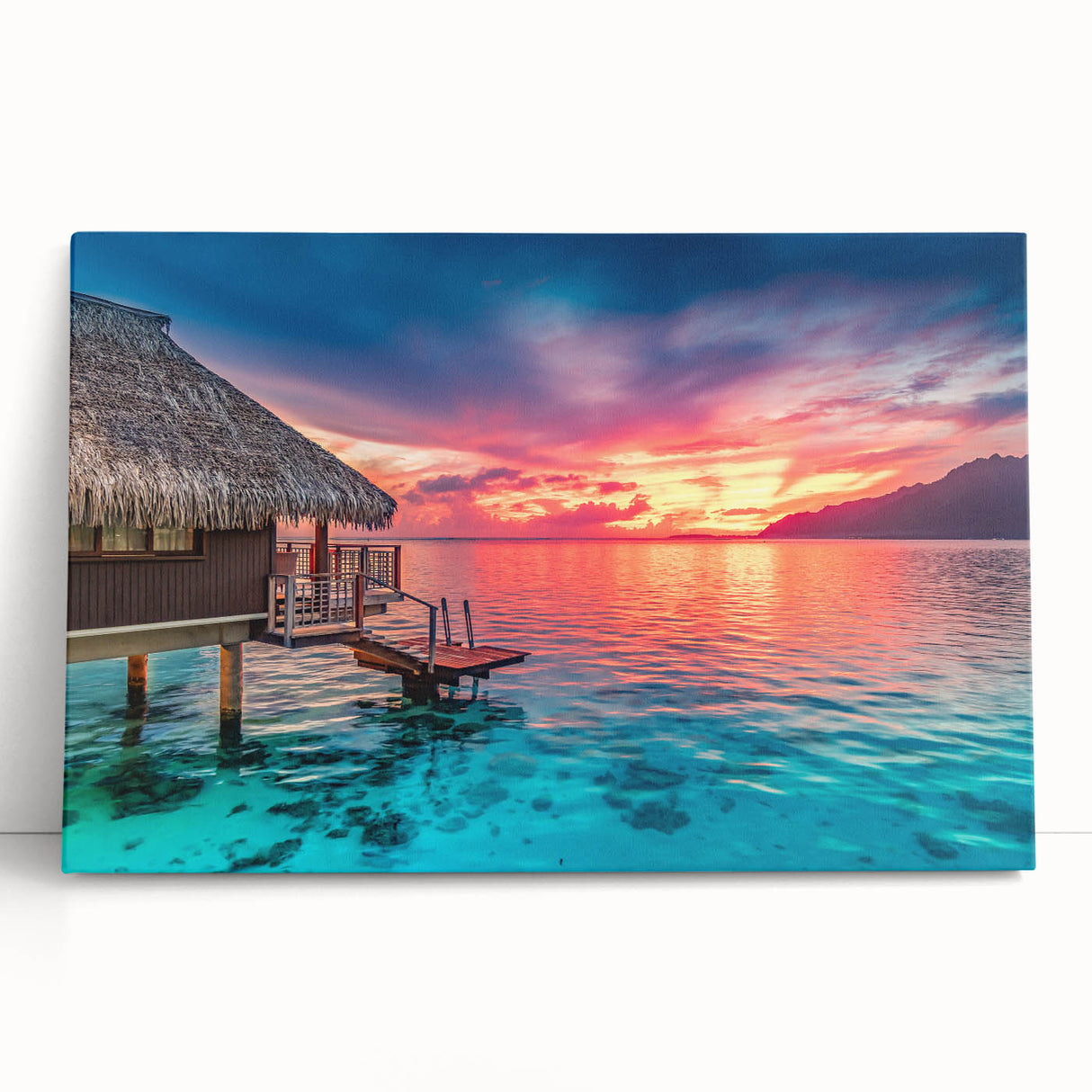 Tahiti Sunset Bliss - Overwater Bungalow Canvas Art