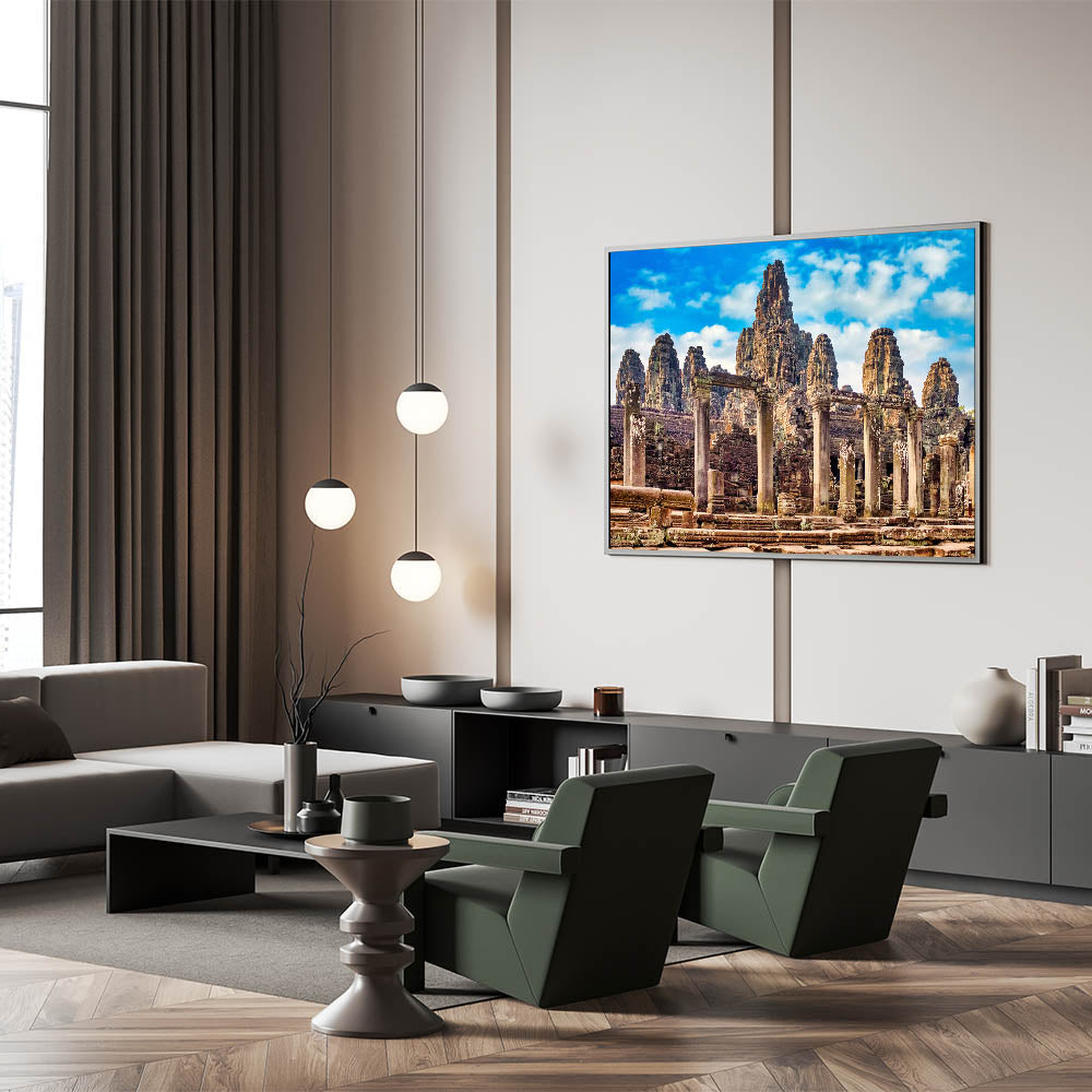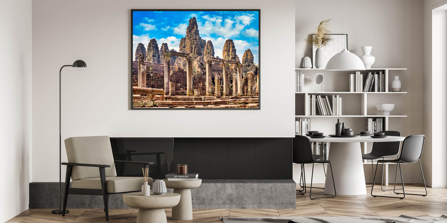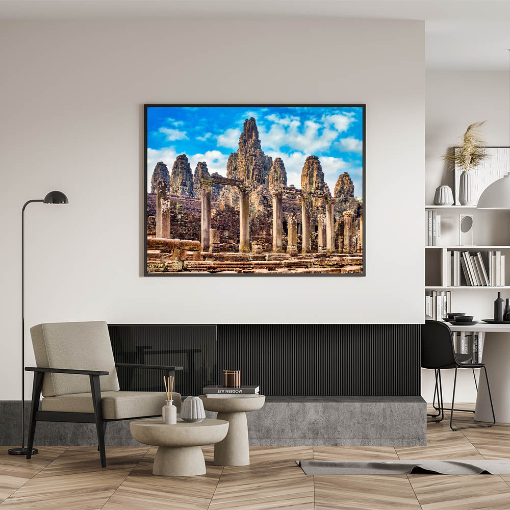 This artwork is perfect for history enthusiasts, travelers, and those who appreciate the cultural richness of Southeast Asia. Add a touch of ancient mystery and grandeur to your home with this stunning print of Bayon Temple.