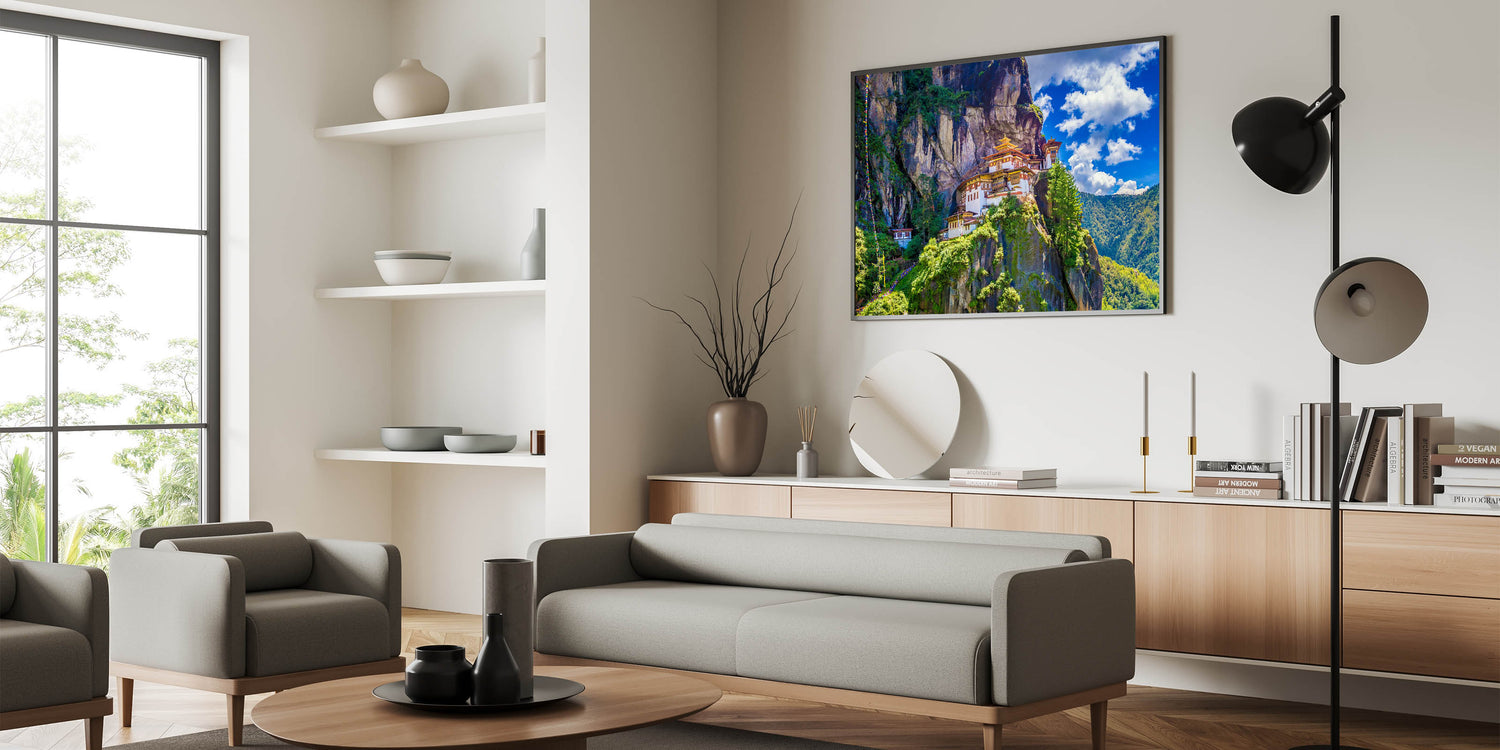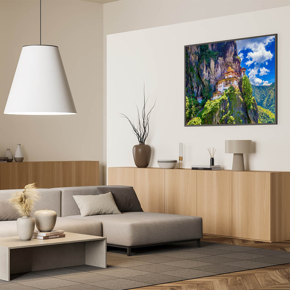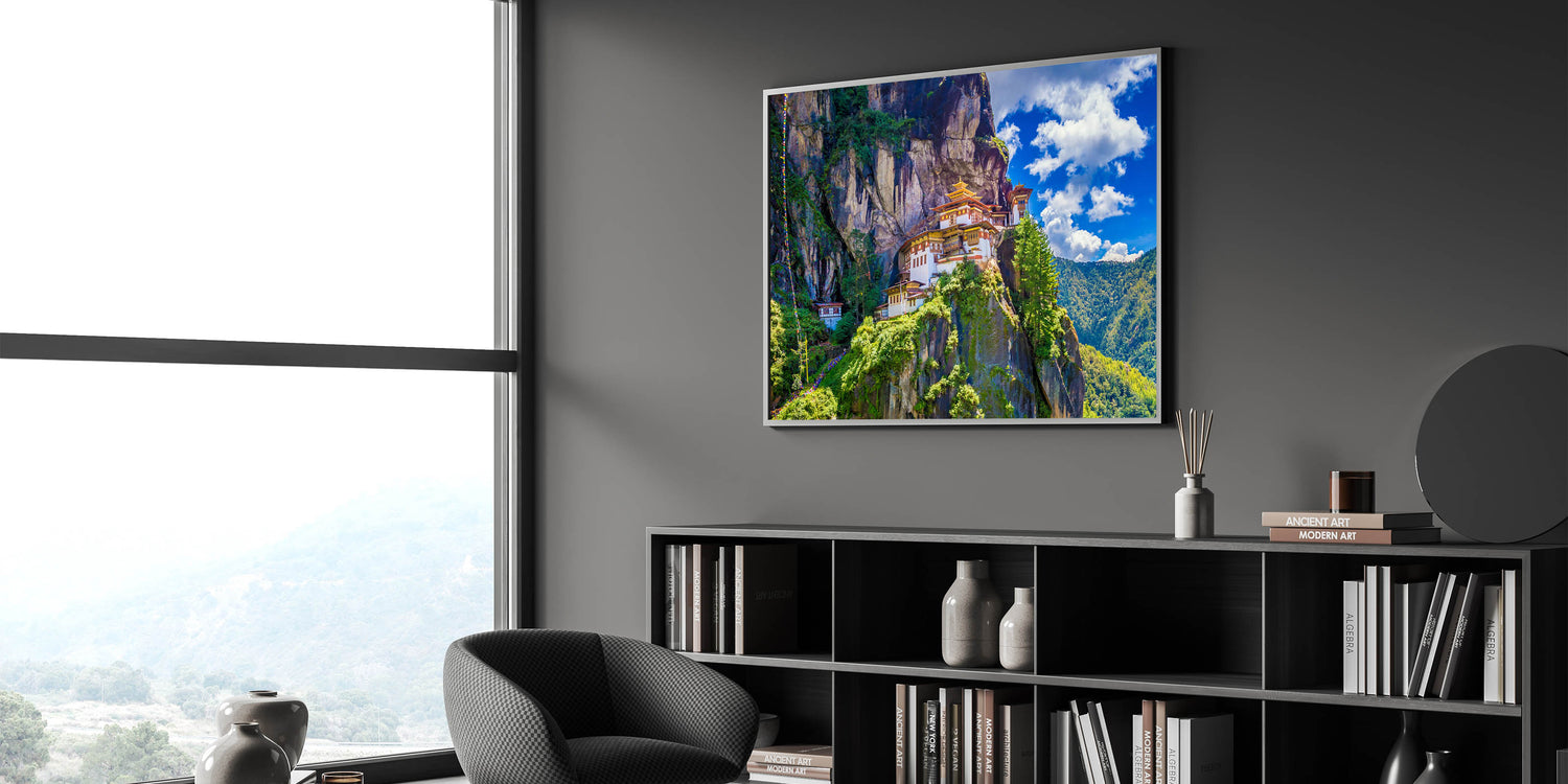 This Bhutan wall art is perfect for adding a touch of spirituality and natural beauty to your living space. It brings the peaceful and majestic landscapes of Bhutan into your home, creating a sense of tranquility and inspiration.