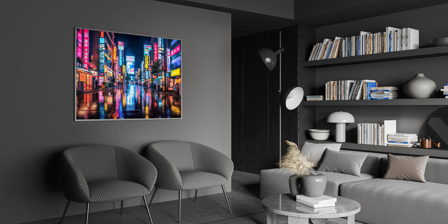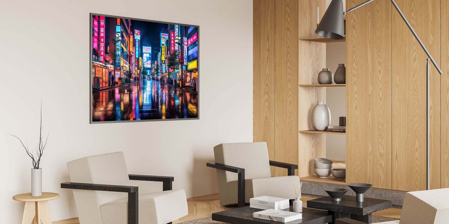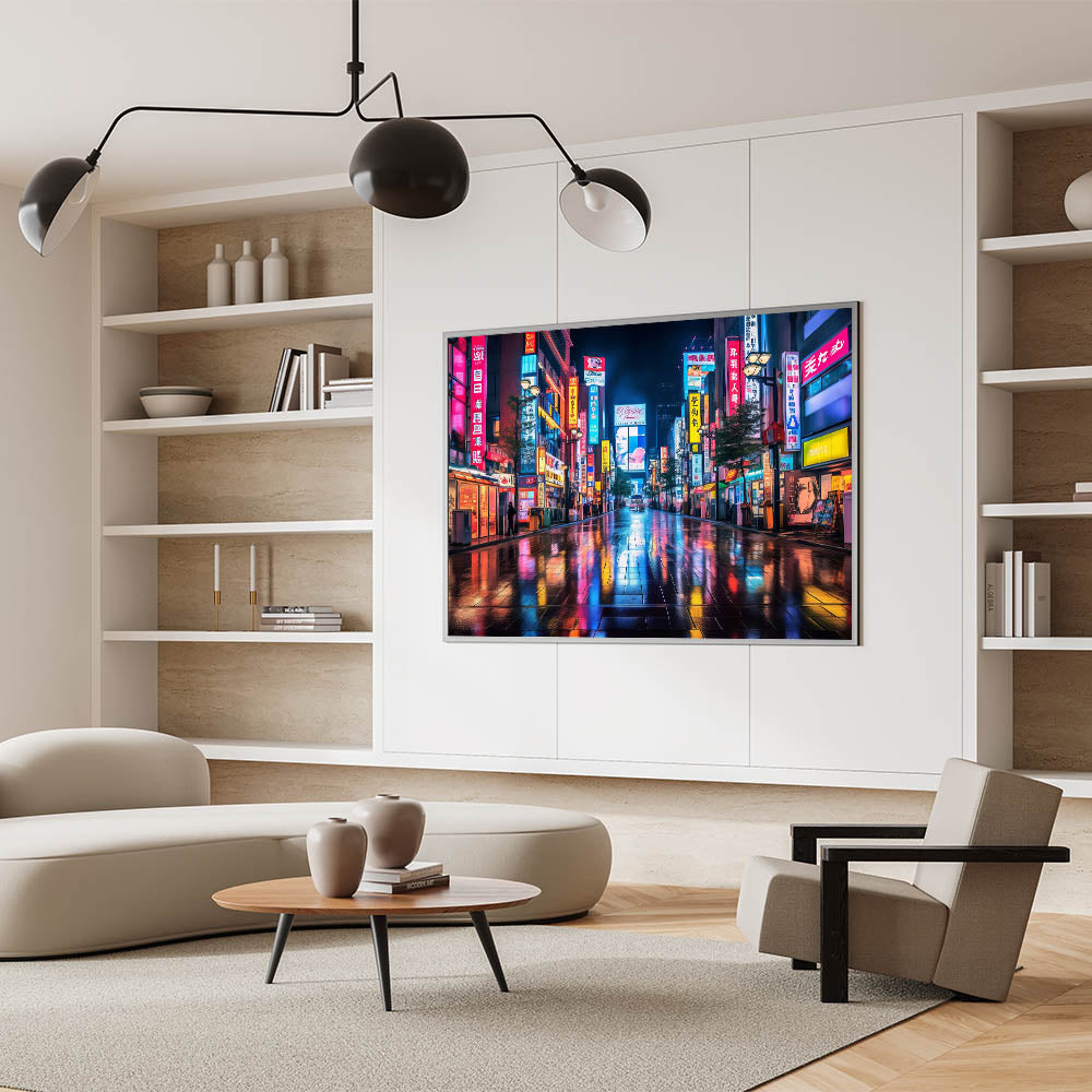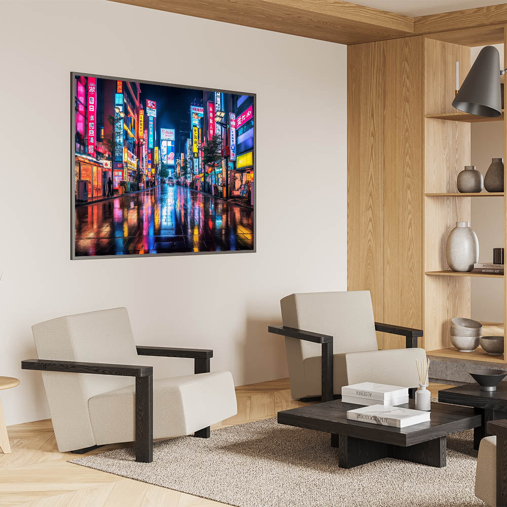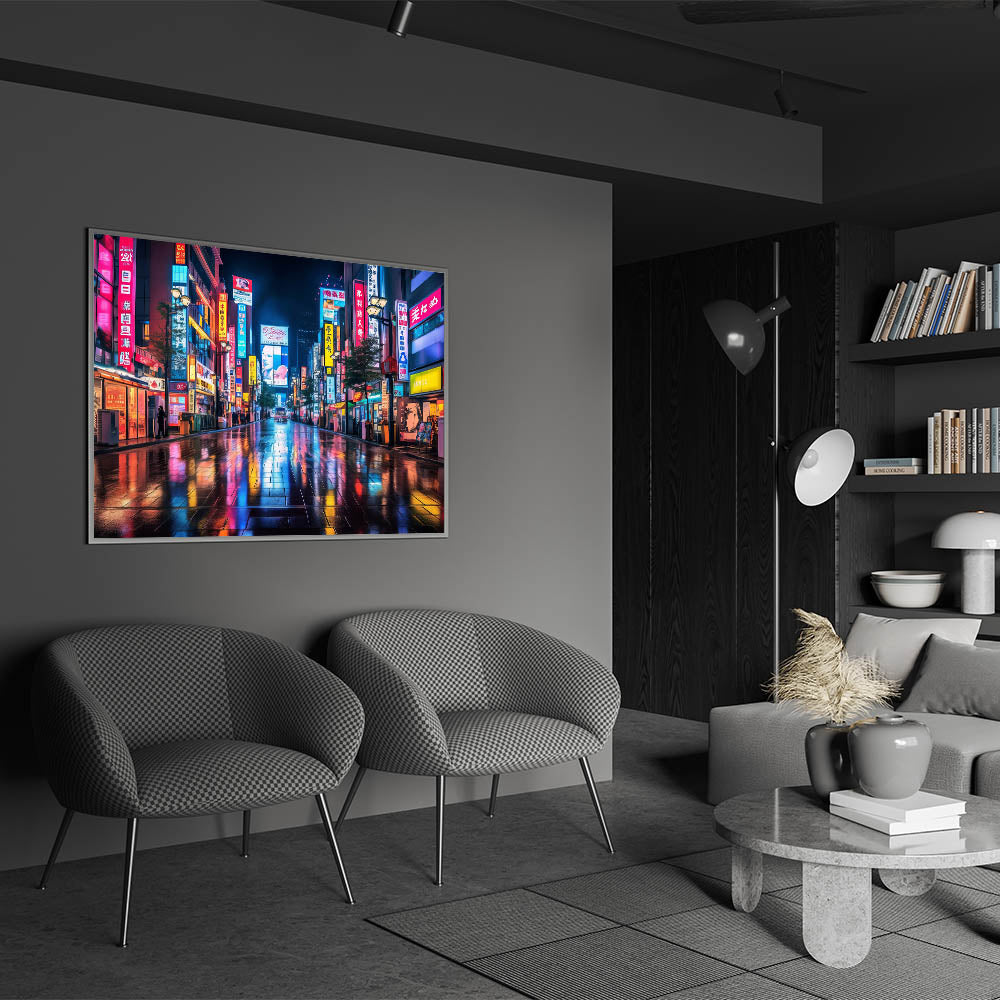 Tokyo Night Cityscape Art – Vibrant Neon Street Print for Japan Decor