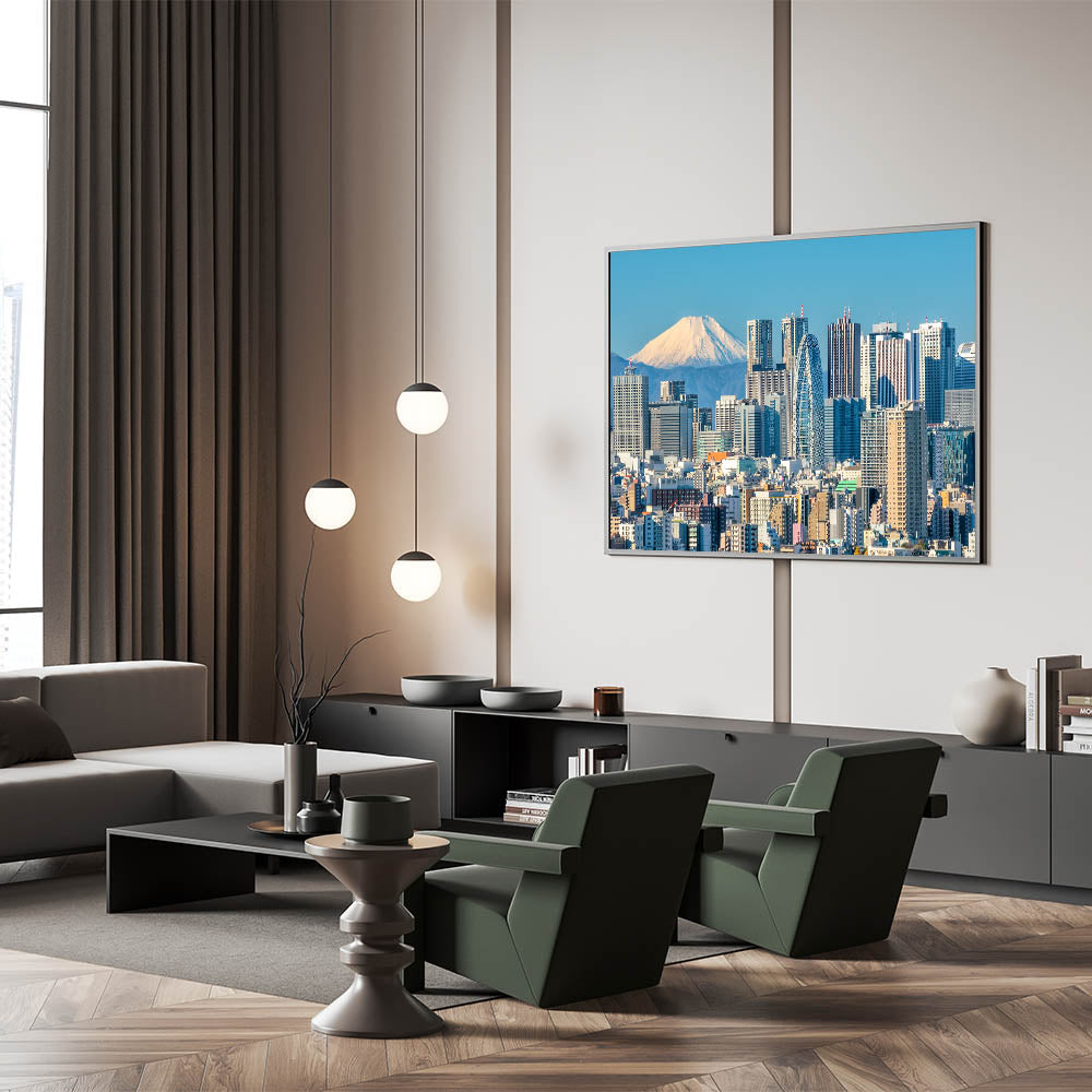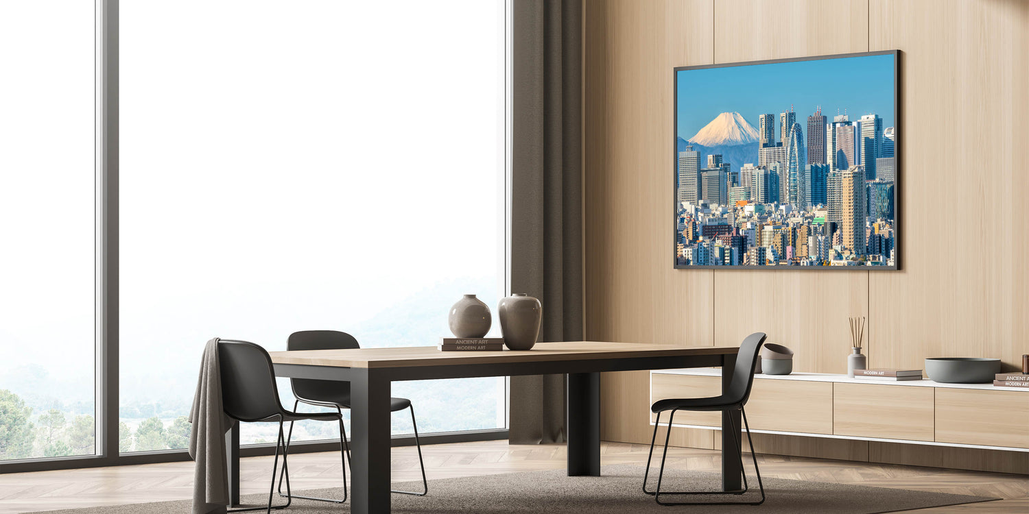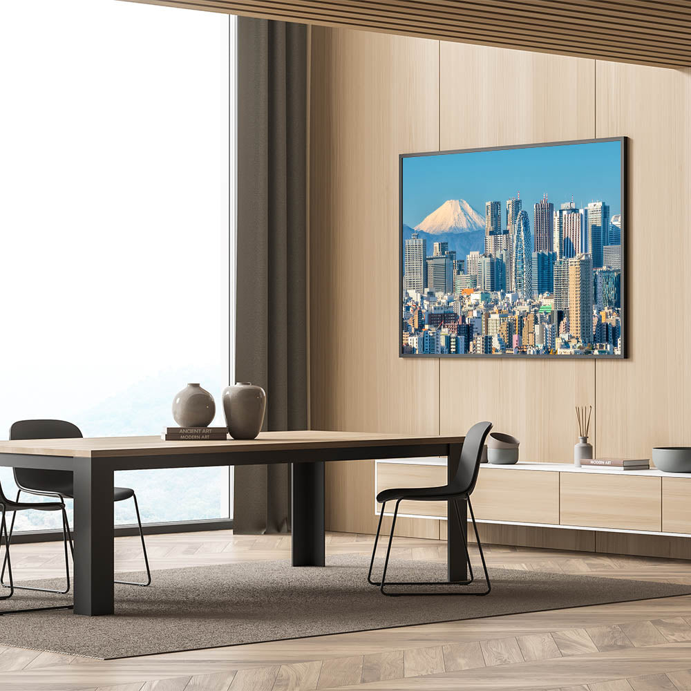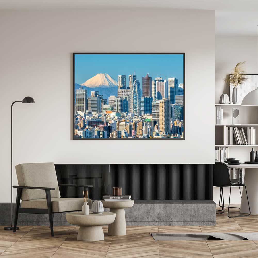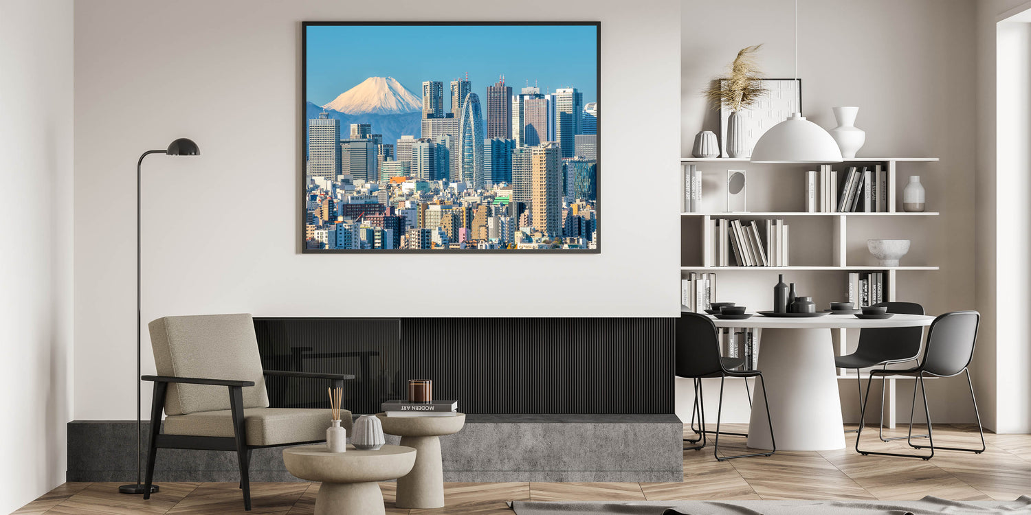 Whether you're a lover of Japanese culture or looking to add a touch of modern elegance to your decor, this Tokyo cityscape with Mount Fuji is an ideal choice. Enhance your walls with this unique artwork that celebrates the harmony of urban development and natural beauty.