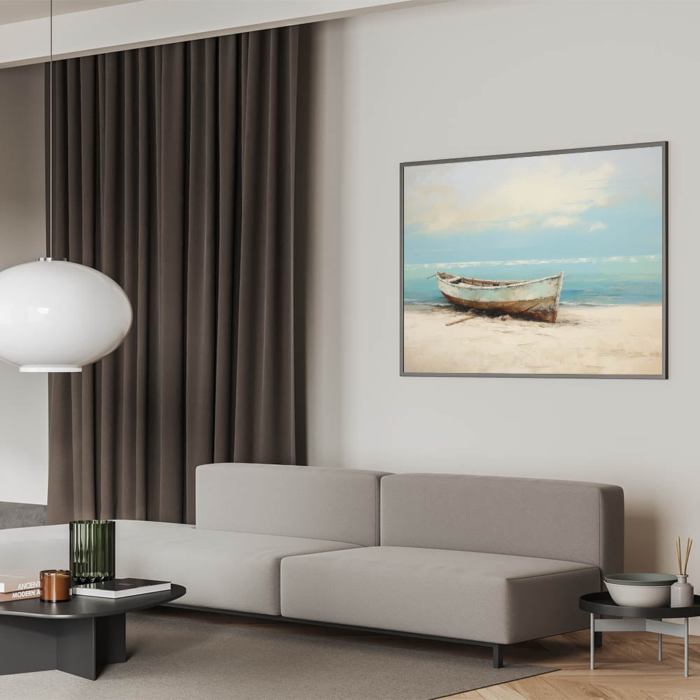 This rowboat wall art is perfect for those who want to bring the serene beauty of the beach into their home. Its soothing colors and peaceful scene make it a versatile piece that can complement both modern and traditional decor styles, adding a touch of nature's tranquility to any space.