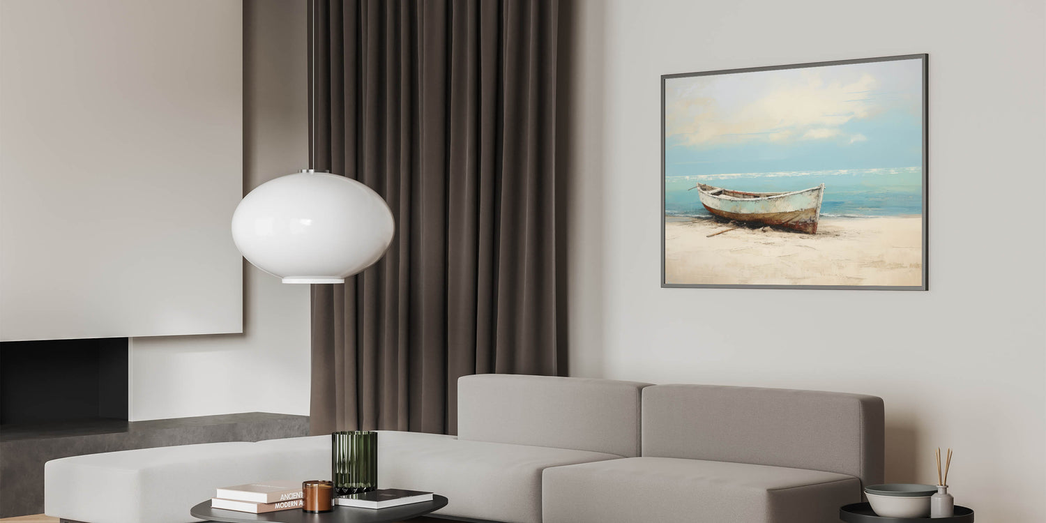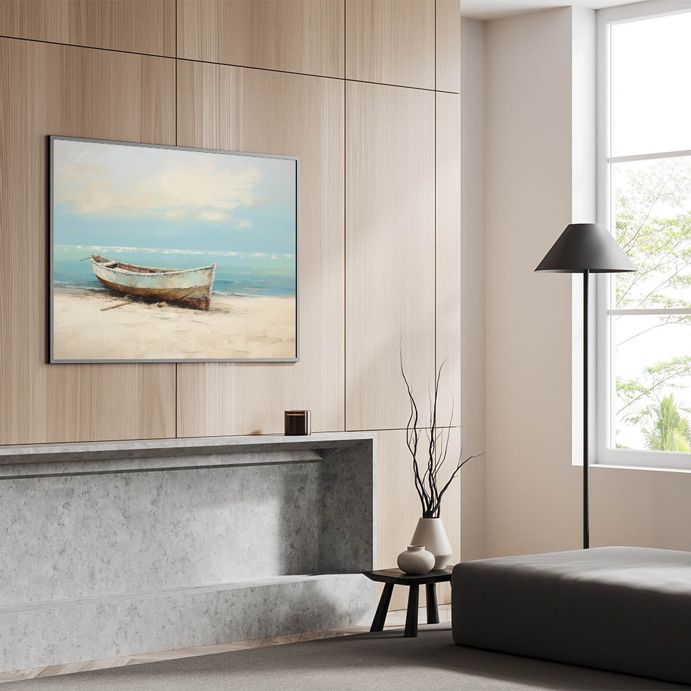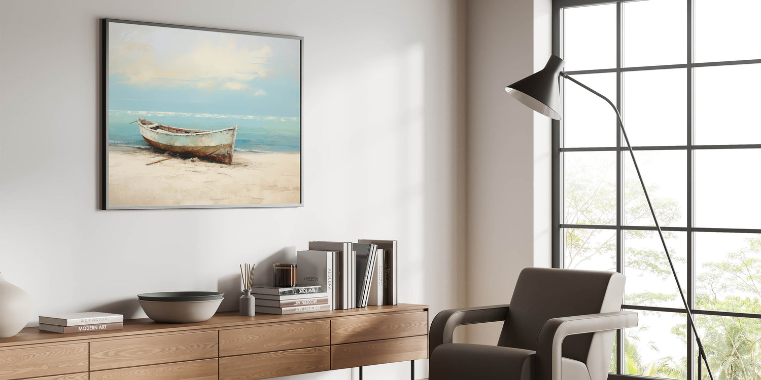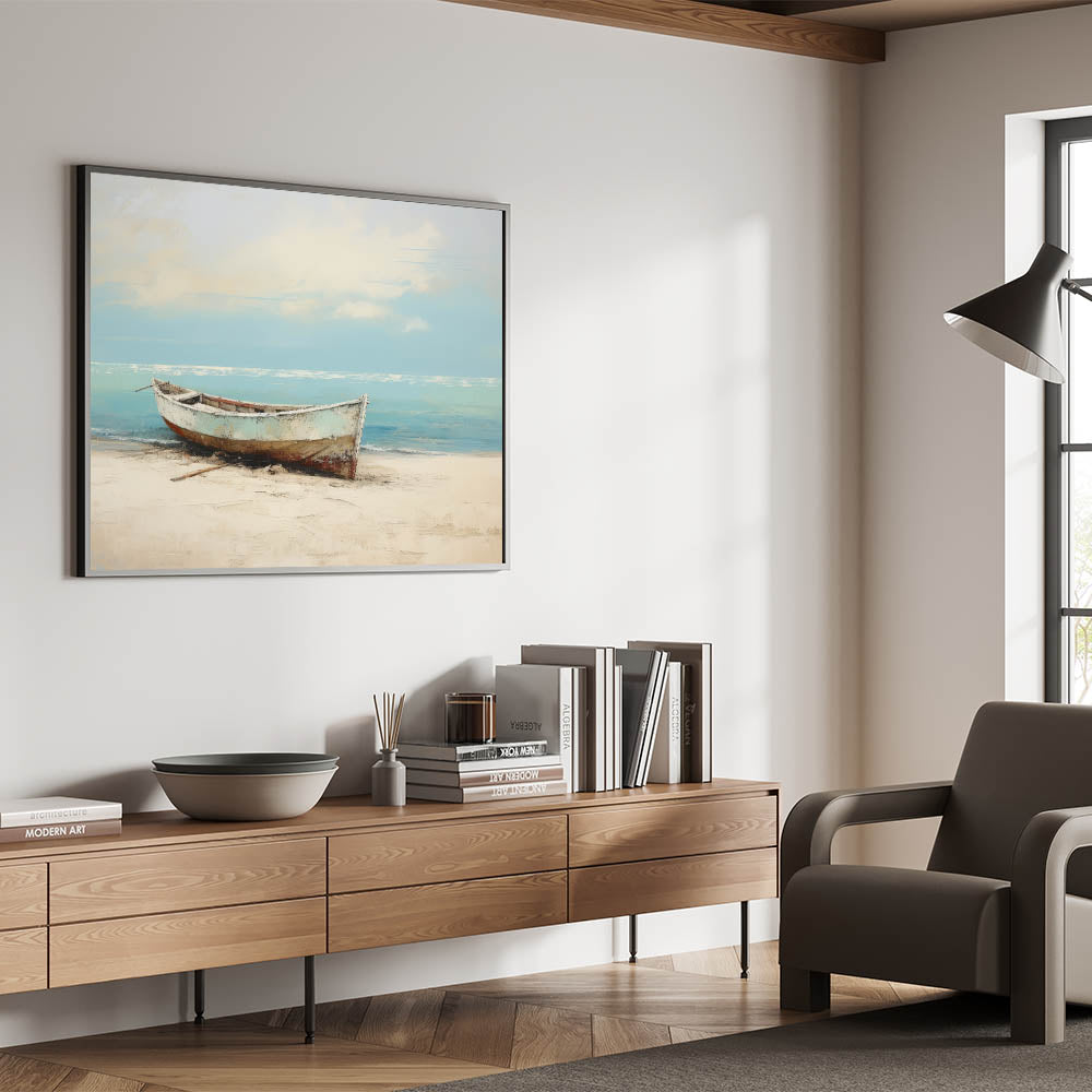 Tranquil Beach Rowboat Wall Art - Coastal Serenity Nautical Decor