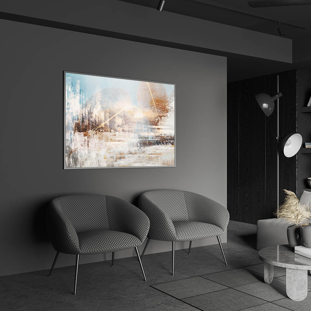Add a touch of ethereal beauty to your space with our Translucent Leaf Abstract Art. This modern brush strokes canvas features delicate, translucent leaf designs overlaid on a textured background of soft blues, whites, and earthy browns. The intricate vein patterns of the leaves, combined with the subtle color palette, create a serene and sophisticated look, perfect for any contemporary or minimalist interior.