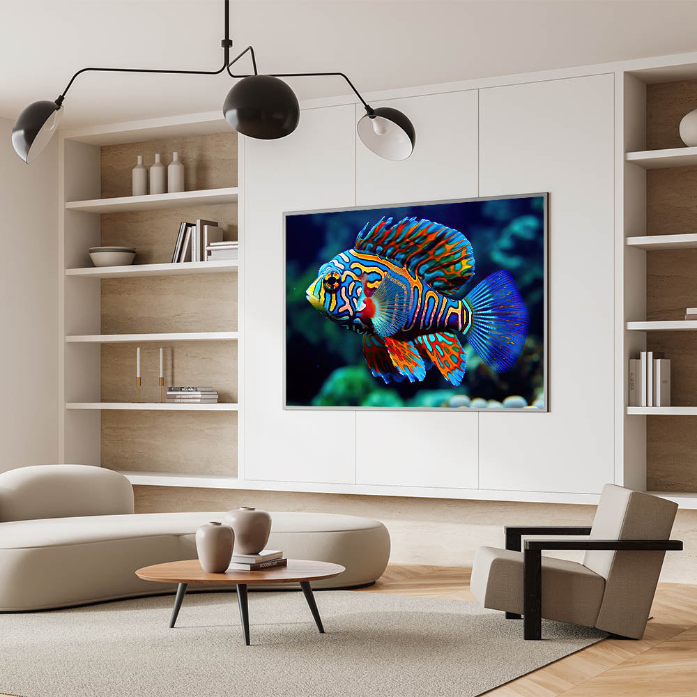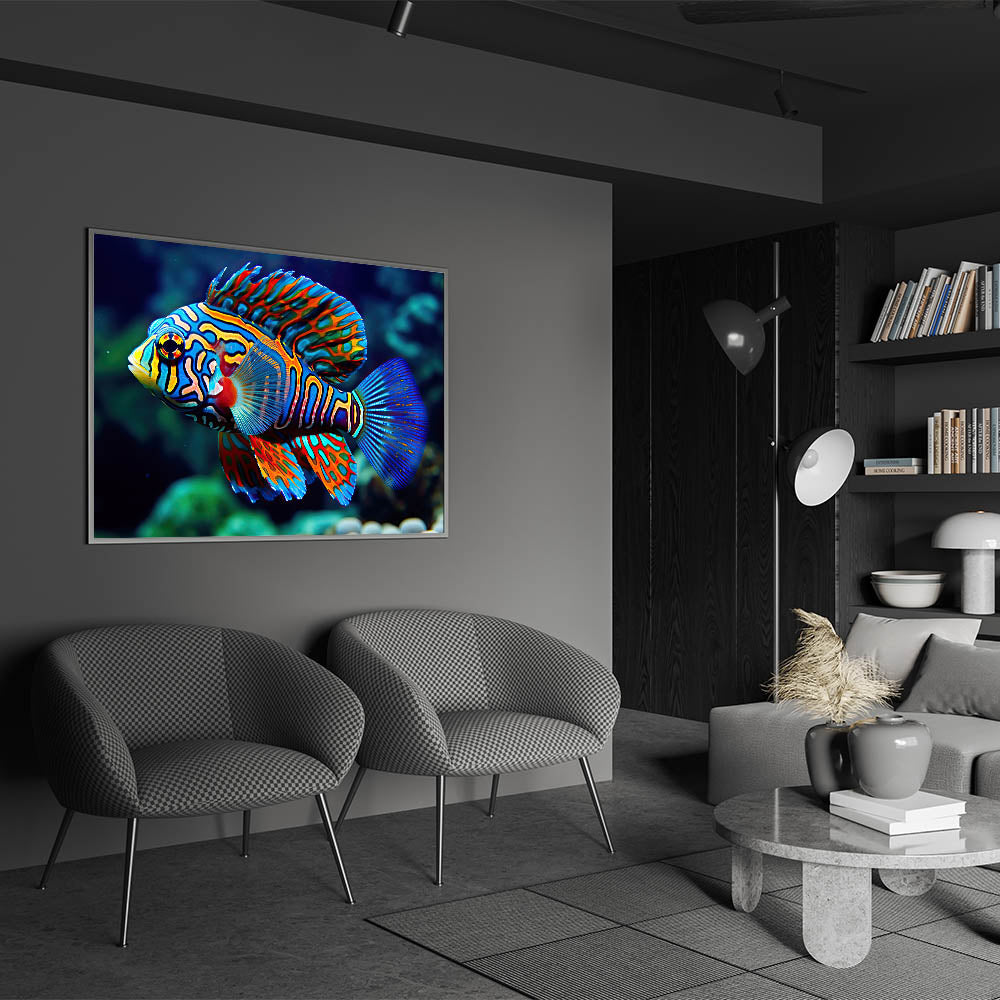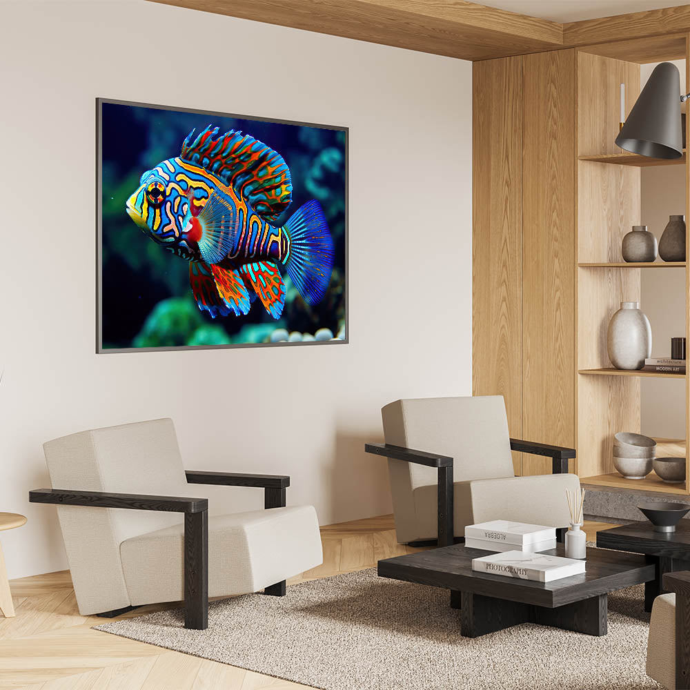 Bring the vivid colors of the Great Barrier Reef into your home with this stunning tropical fish wall art. Featuring a brilliantly colored fish with intricate patterns, this artwork captures the dazzling beauty of Australia's underwater world. The bold blues, oranges, and yellows in this piece make it perfect for adding a splash of color to any room.