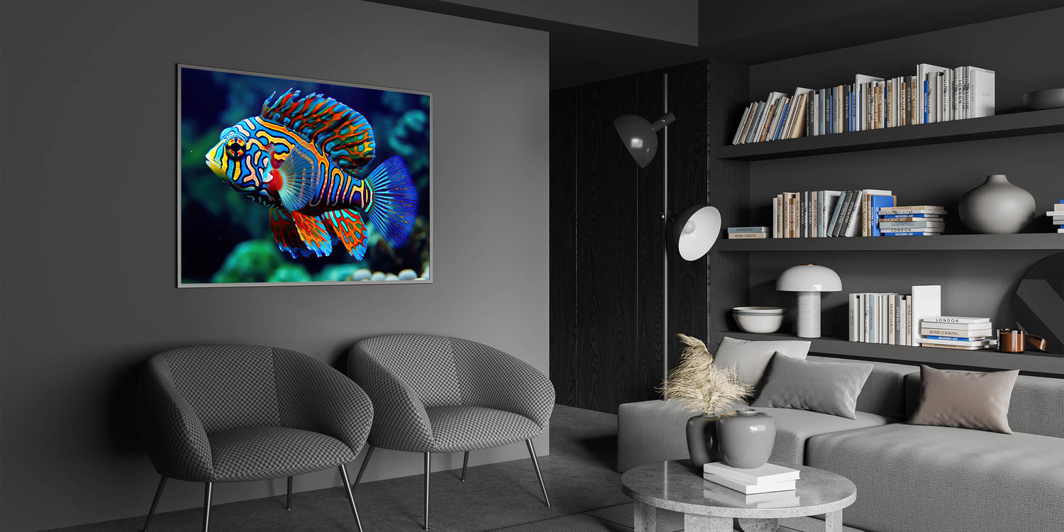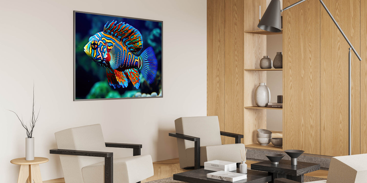 - High-quality canvas print showcasing a vibrant tropical fish from the Great Barrier Reef.