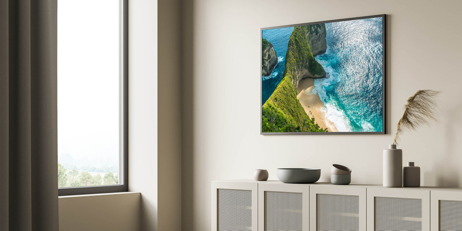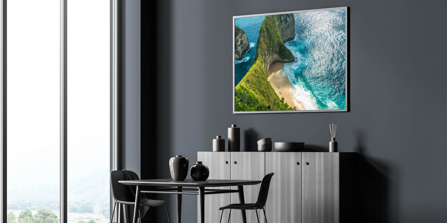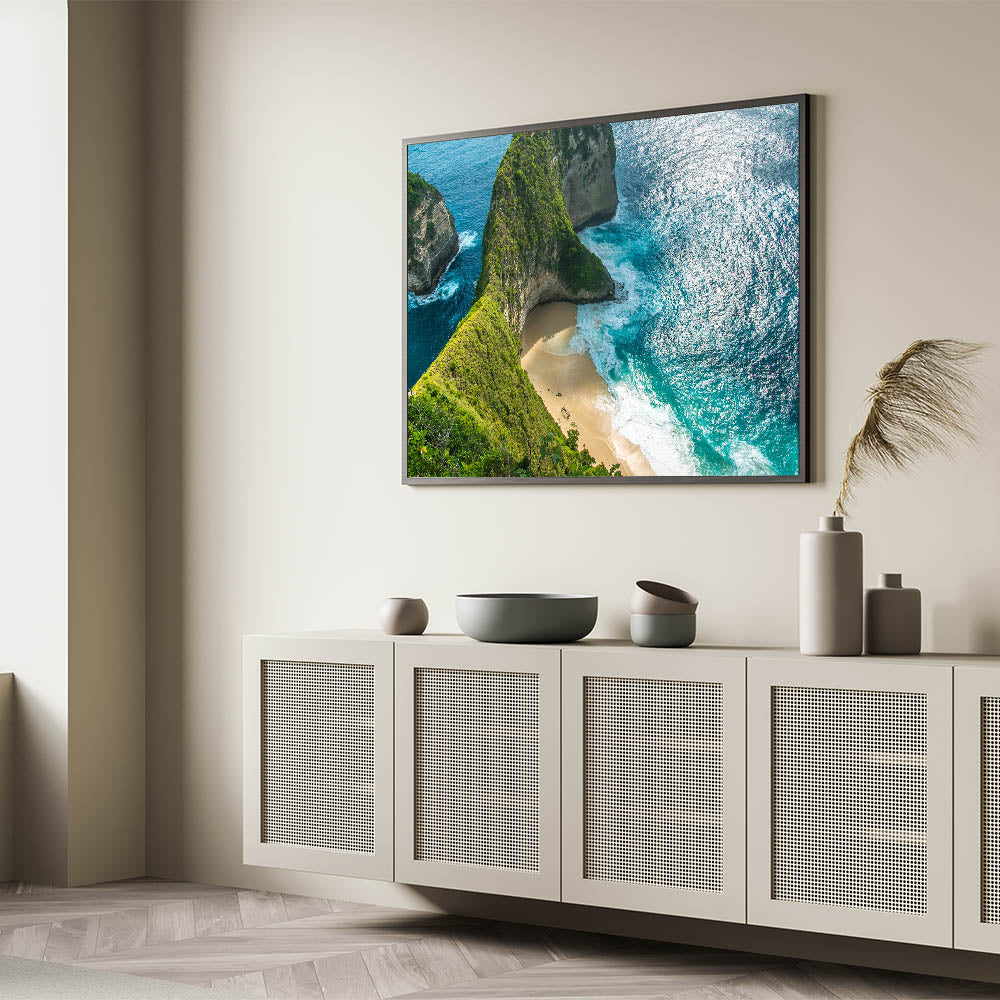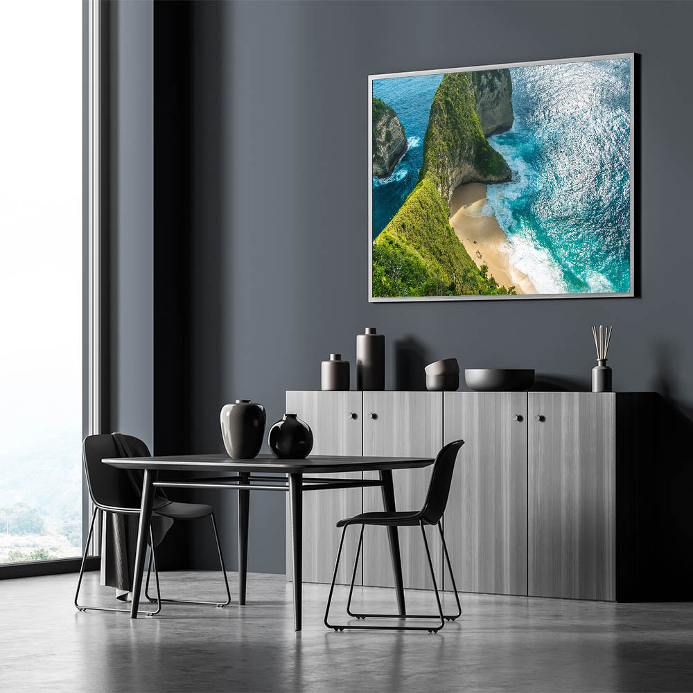Experience the breathtaking beauty of Indonesia’s coastal paradise with this captivating wall art. Showcasing a stunning aerial view of a pristine beach nestled between dramatic cliffs and the turquoise waters of the ocean, this artwork brings the essence of Indonesia's tropical landscapes into your space. The vibrant colors of the lush greenery, golden sands, and crystal-clear water create a calming yet invigorating scene, perfect for any room.