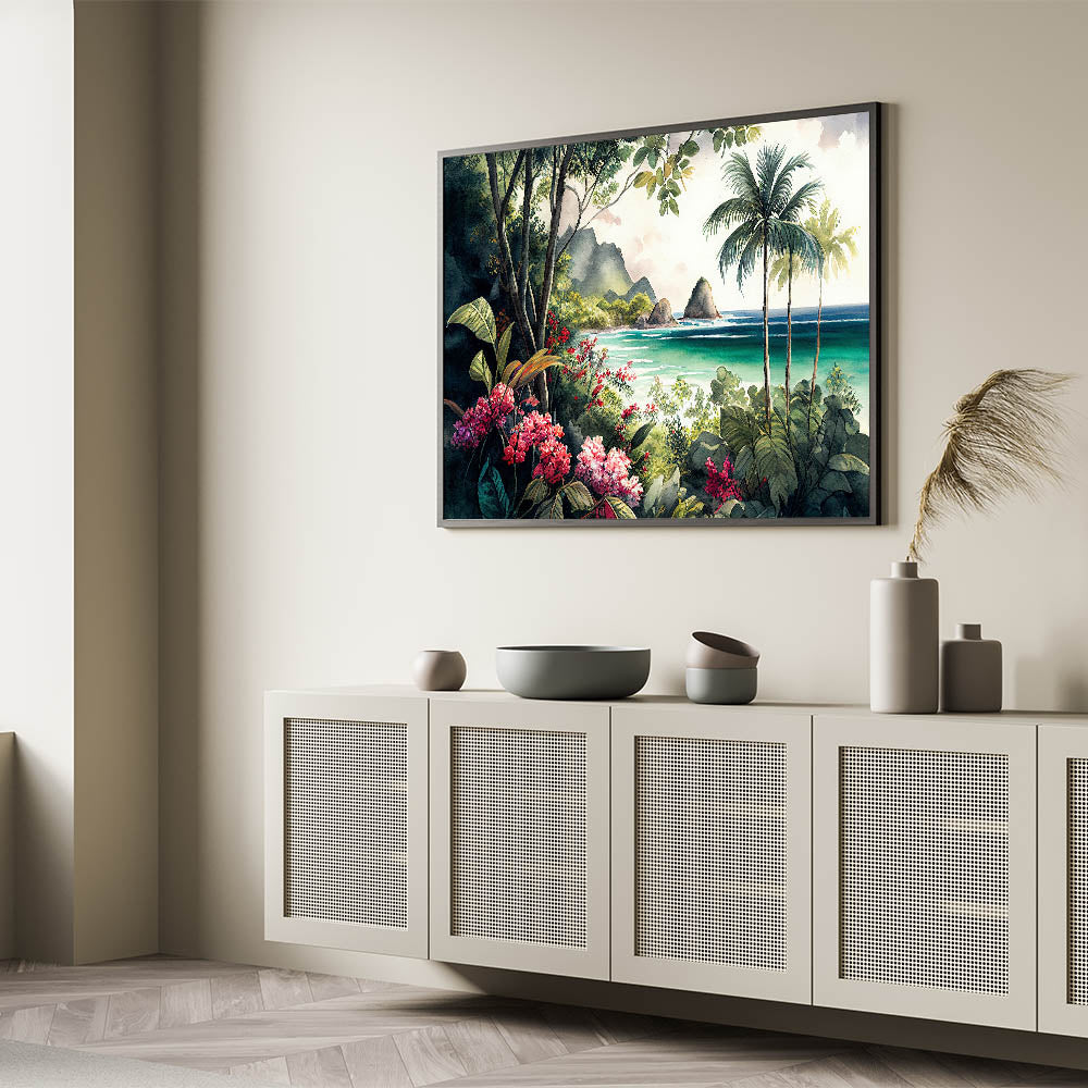 This Tropical Rainforest Ocean View Art is more than just a decorative piece—it’s a window to paradise. Perfect for those who cherish the beauty of nature, this print will bring a sense of calm and relaxation to any room.