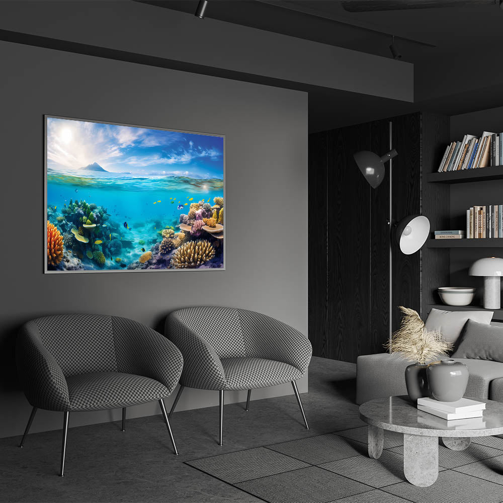 - High-quality canvas print showcasing the vibrant corals and tropical fish of the Great Barrier Reef.