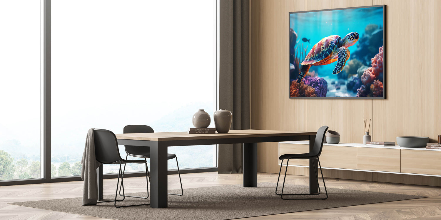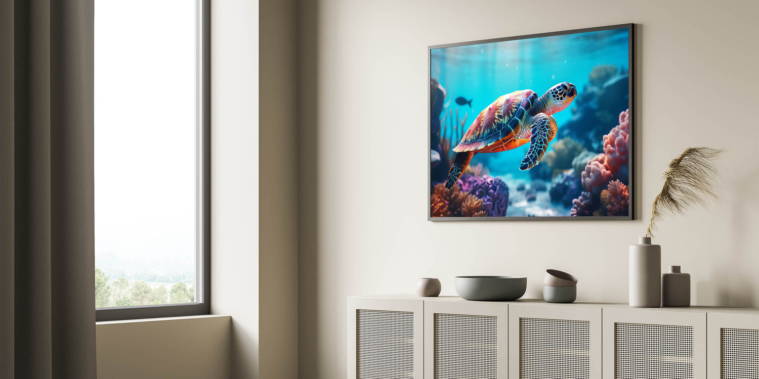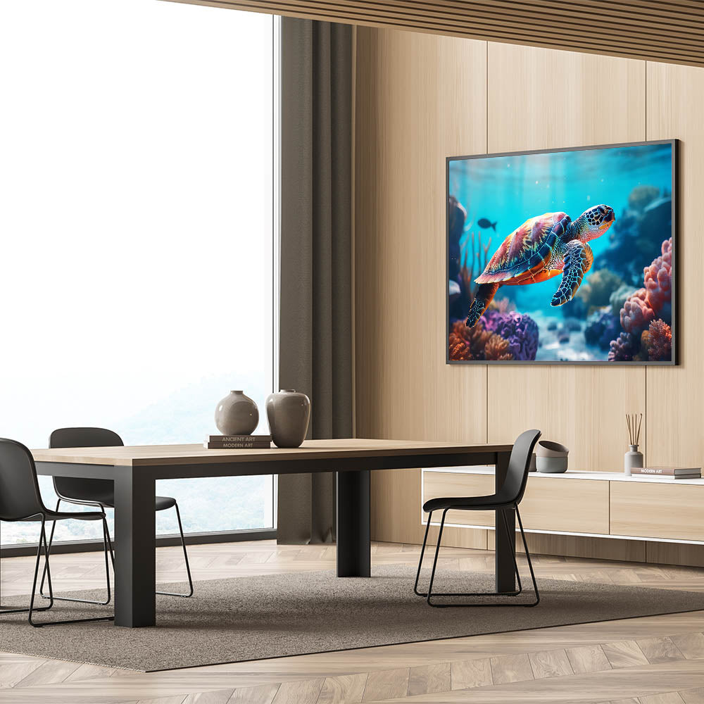 Dive into the beauty of the ocean with this stunning sea turtle wall art. Capturing the vibrant colors of underwater life, this artwork features a majestic sea turtle swimming gracefully among coral reefs. Perfect for ocean lovers, this print adds a splash of marine life to any room, bringing the serenity of the sea indoors.