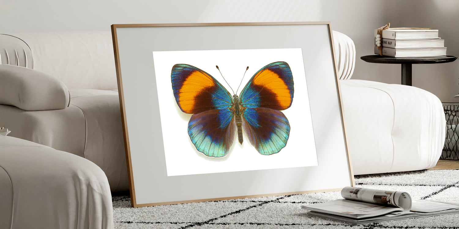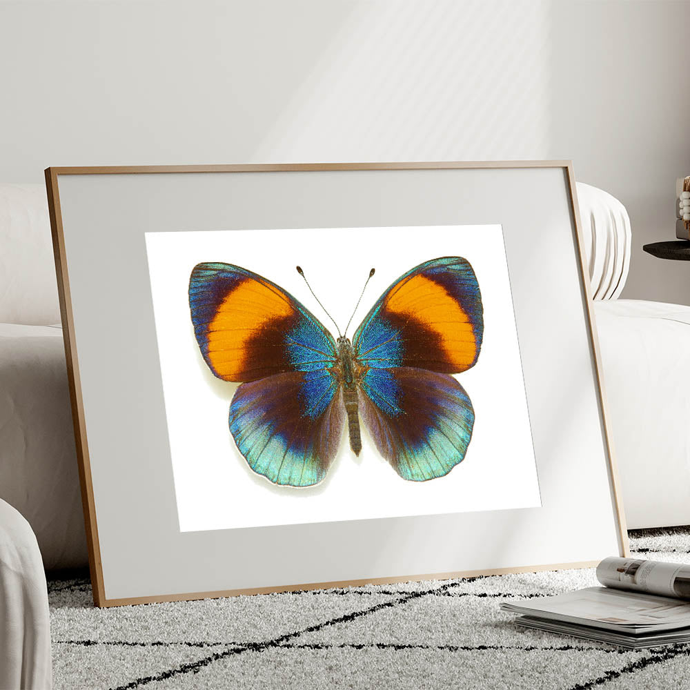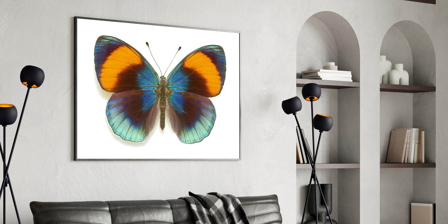 Add a burst of color to your space with this stunning Vibrant Blue & Orange Butterfly Wall Art. Featuring a butterfly with brilliantly iridescent blue wings contrasted by warm orange tips, this artwork captures the beauty and vibrancy of nature. Perfect for bringing a lively, energetic feel to any room, this Butterfly Canvas Print is ideal for those who love bold, striking designs in their décor.
