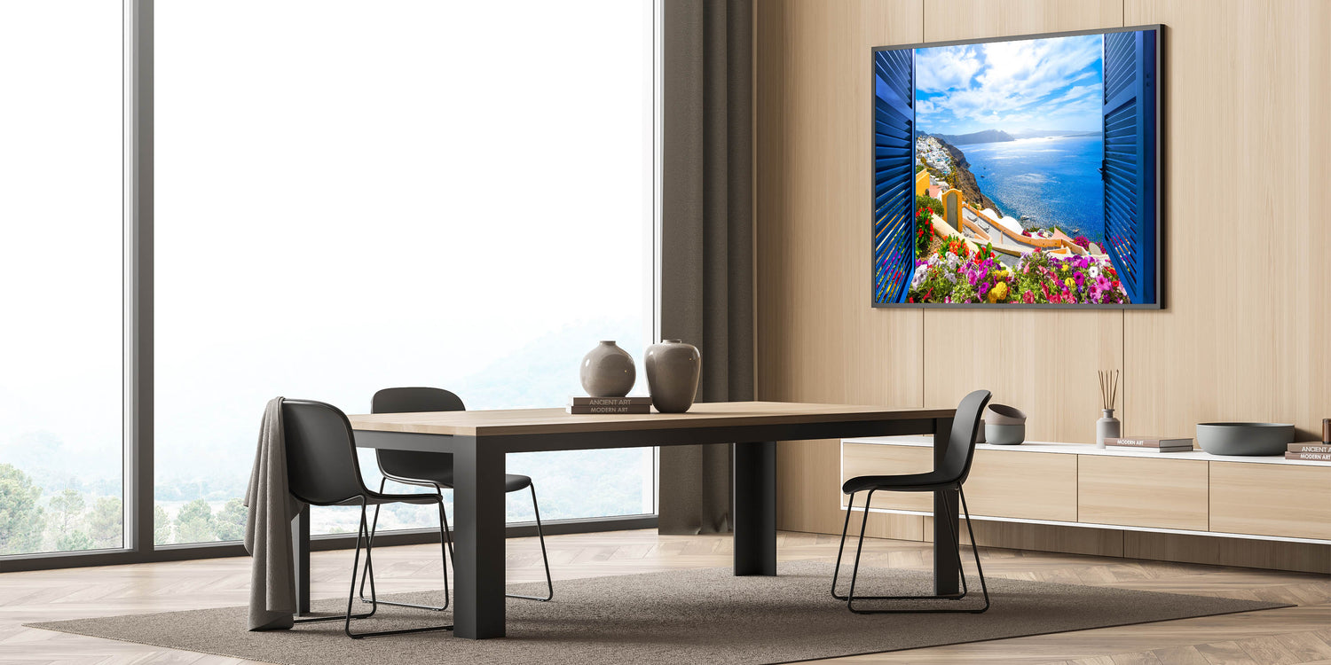 - High-quality architectural window prints that add depth and color to your walls