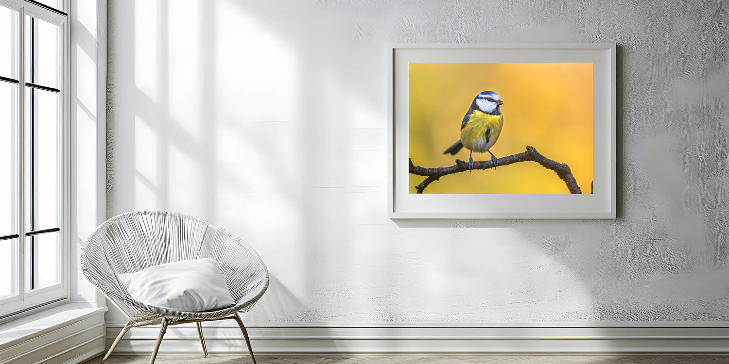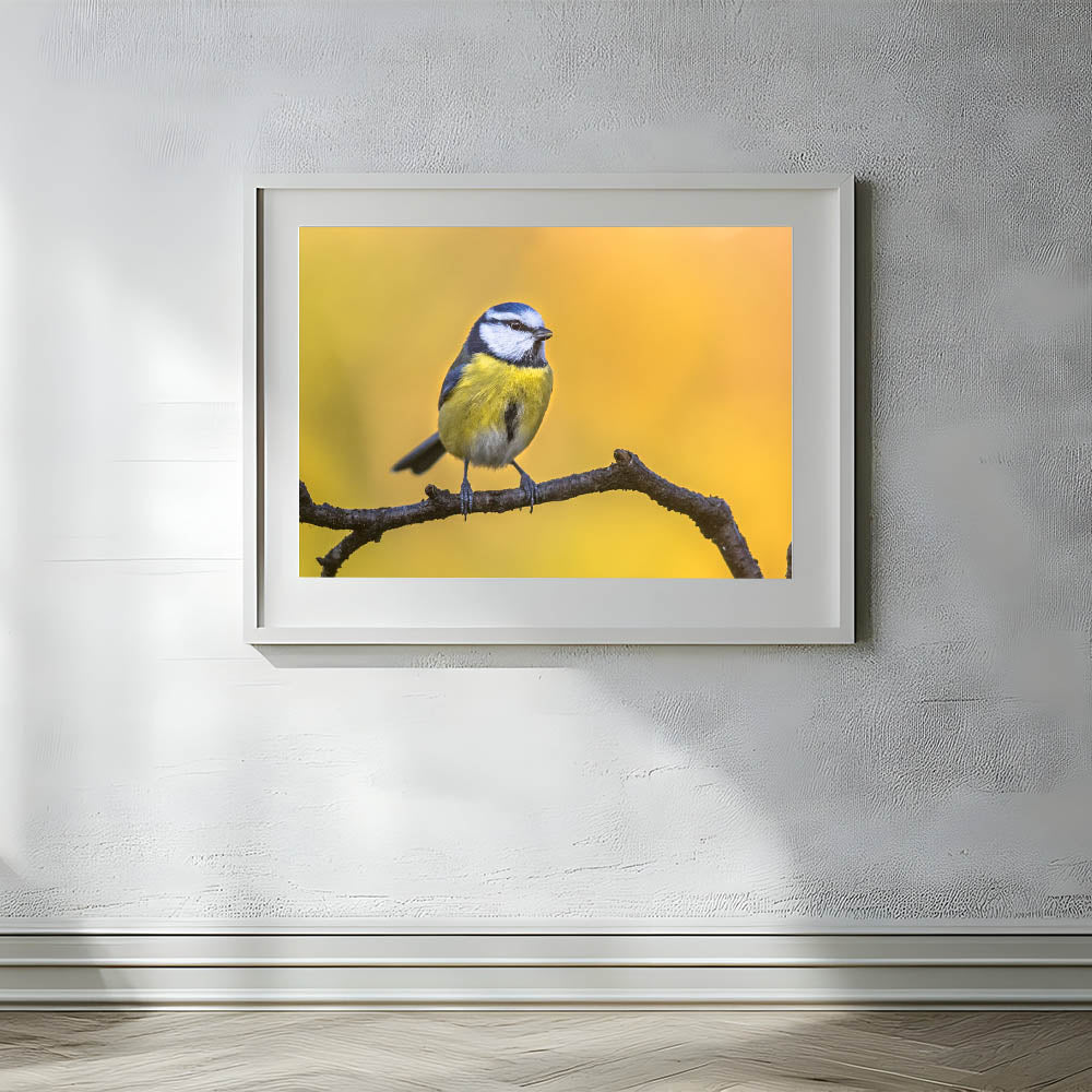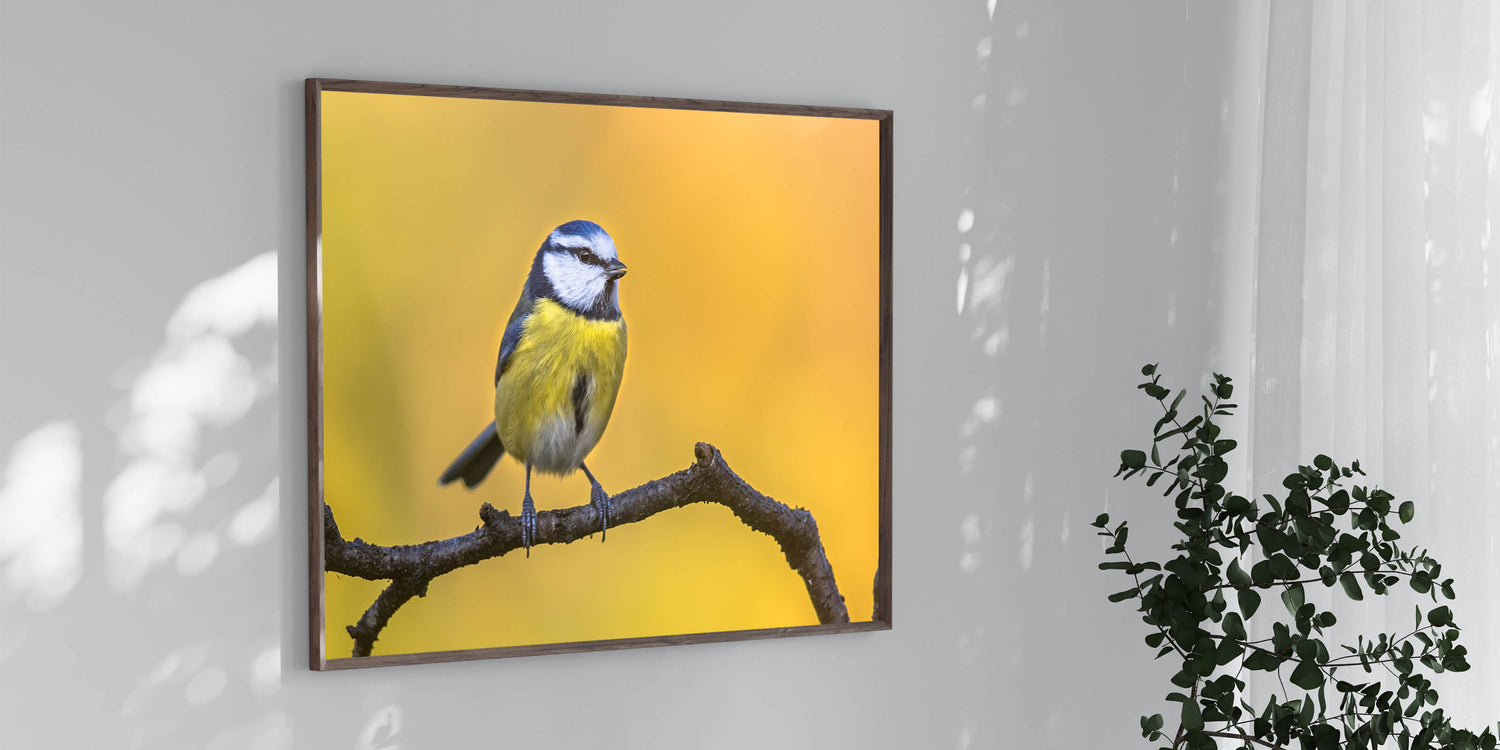 Add a burst of color and nature's charm to your space with this Vibrant Garden Birds Wall Art. Featuring a stunning photograph of a blue and yellow bird perched on a branch against a glowing golden background, this piece captures the beauty of nature in its purest form. The bright, contrasting colors of the bird's feathers against the warm tones of the background make this artwork a lively and eye-catching addition to any room.