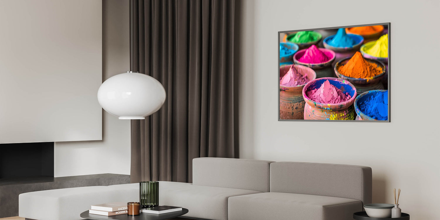 - High-resolution, detailed print featuring Holi colors, highlighting the vibrancy of India’s culture.