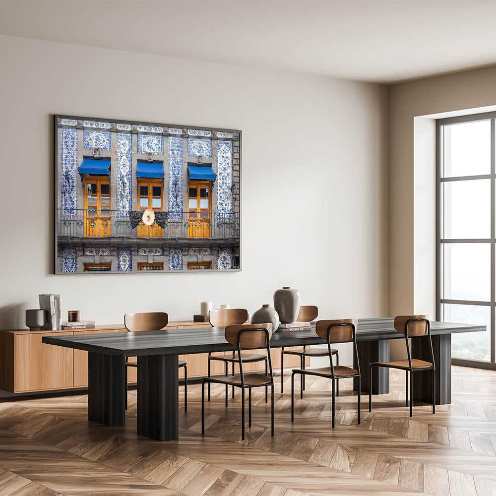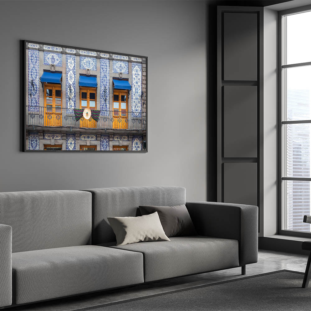 Add a touch of Mexican culture and vibrancy to your space with this stunning wall art showcasing a traditional Mexico City balcony adorned with intricate tilework and vibrant colors. The detailed blue and white tiles, paired with the rich wooden frames, create a beautiful contrast that highlights Mexico City's unique architectural charm. This piece is perfect for anyone who appreciates Mexican design, culture, and craftsmanship.