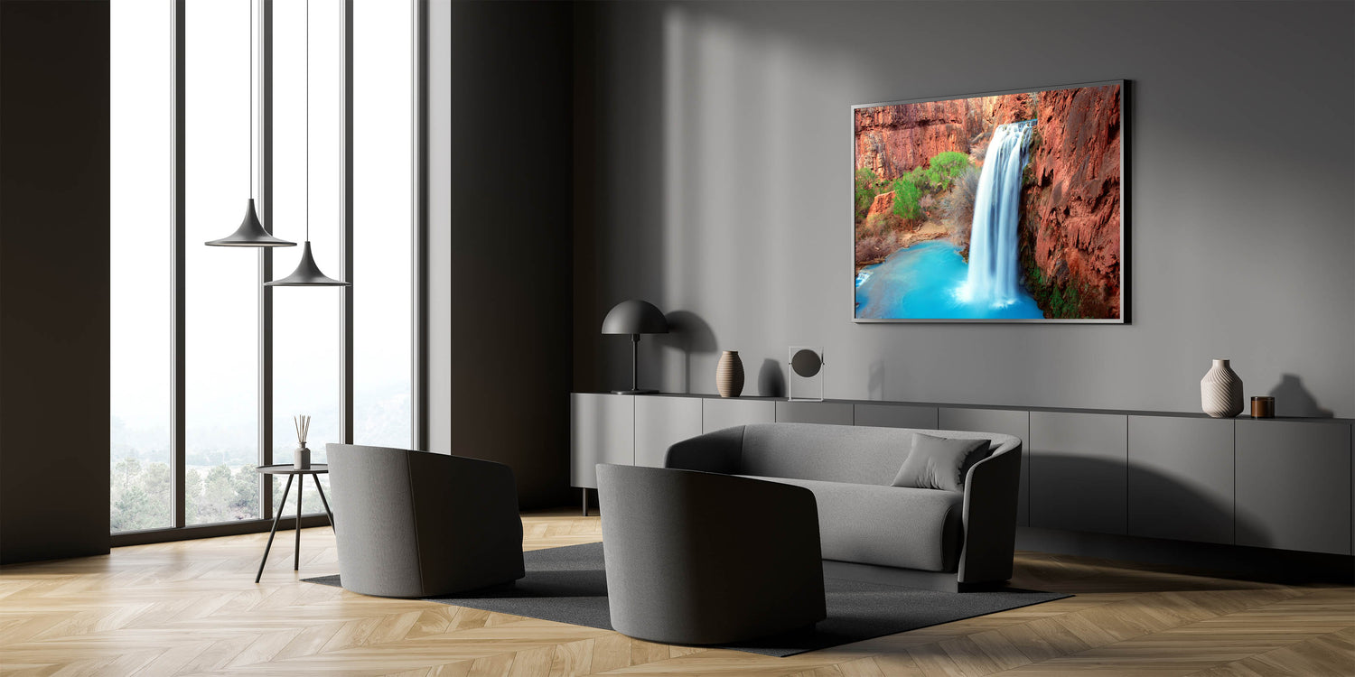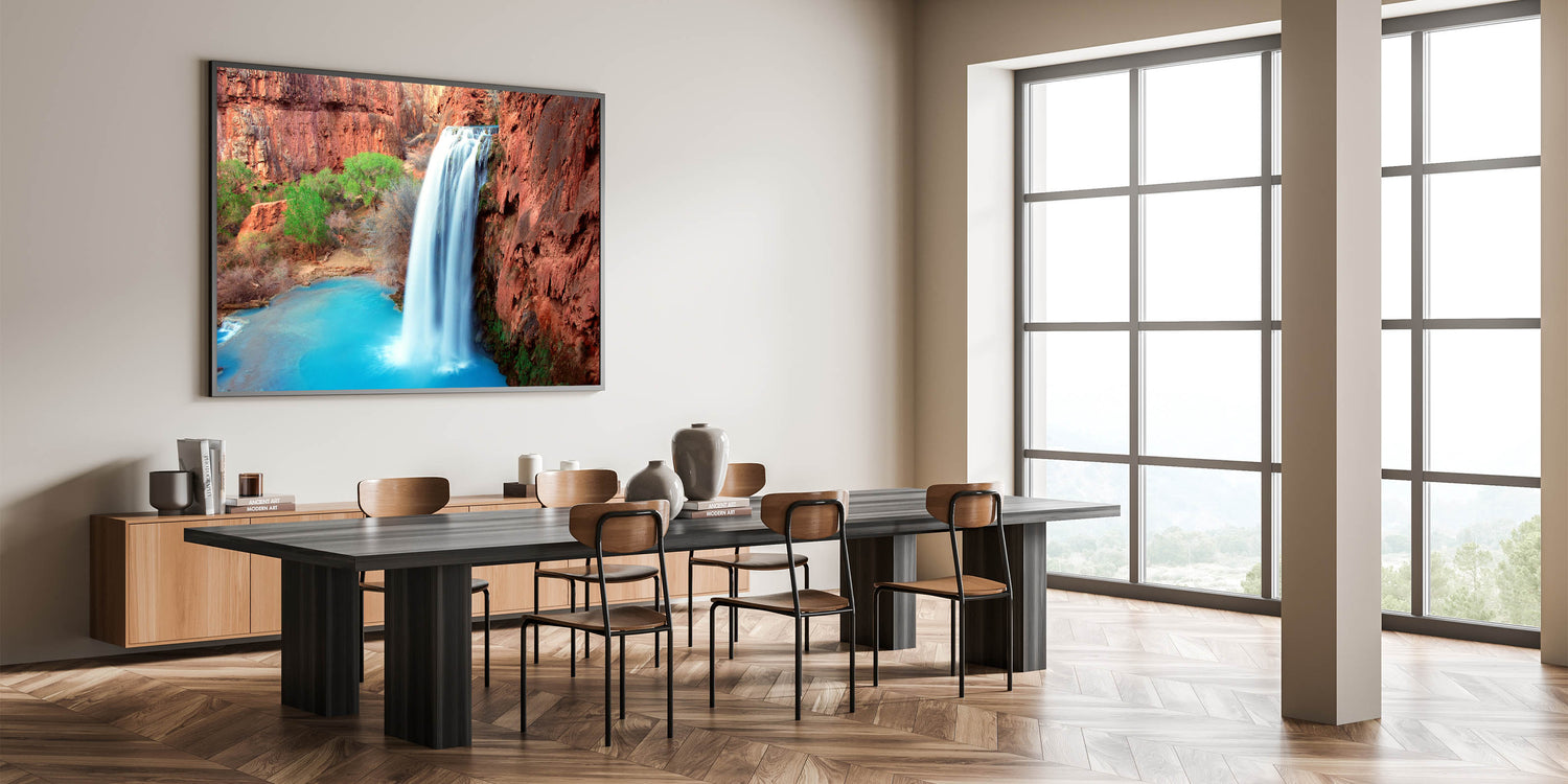 • High-quality waterfall canvas available in various formats, including stretched and framed canvas, acrylic glass, and rolled prints.