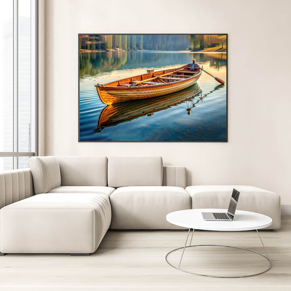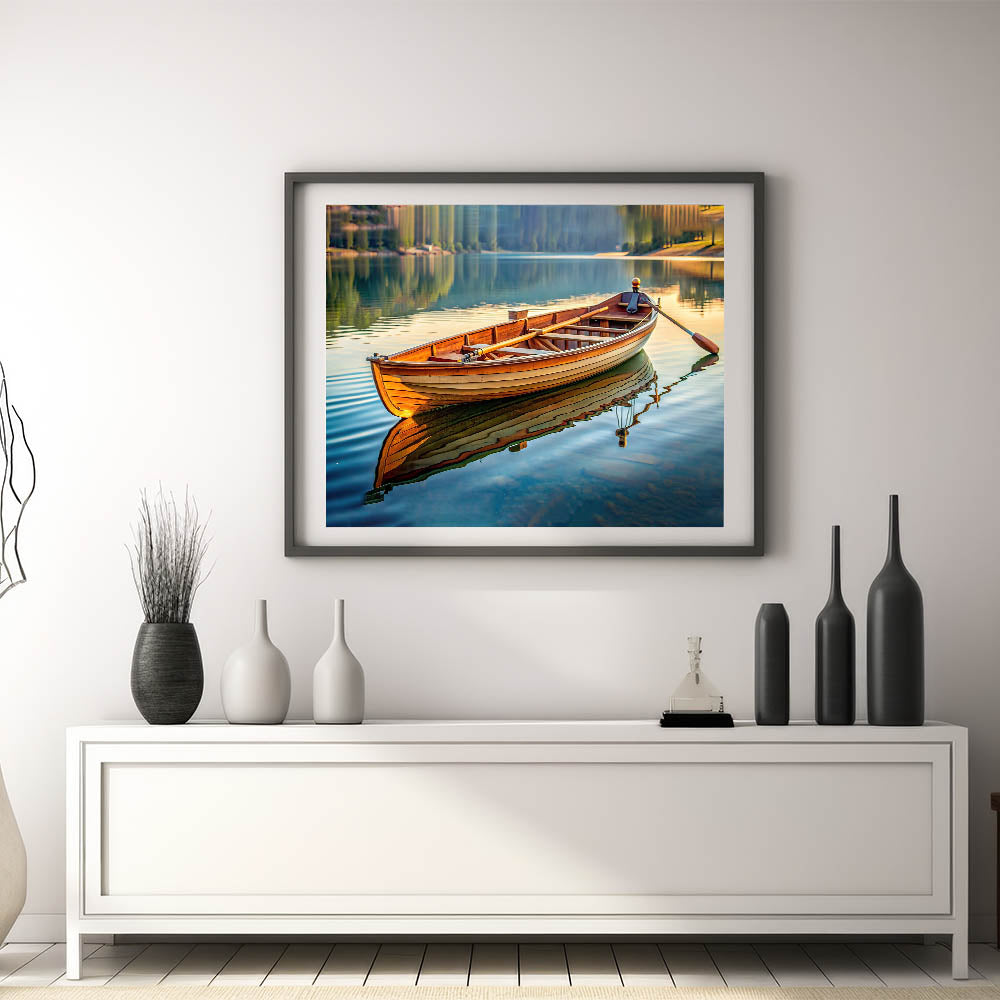 - Handcrafted boat art: Showcases the simplicity and beauty of a single rowboat on calm waters.
