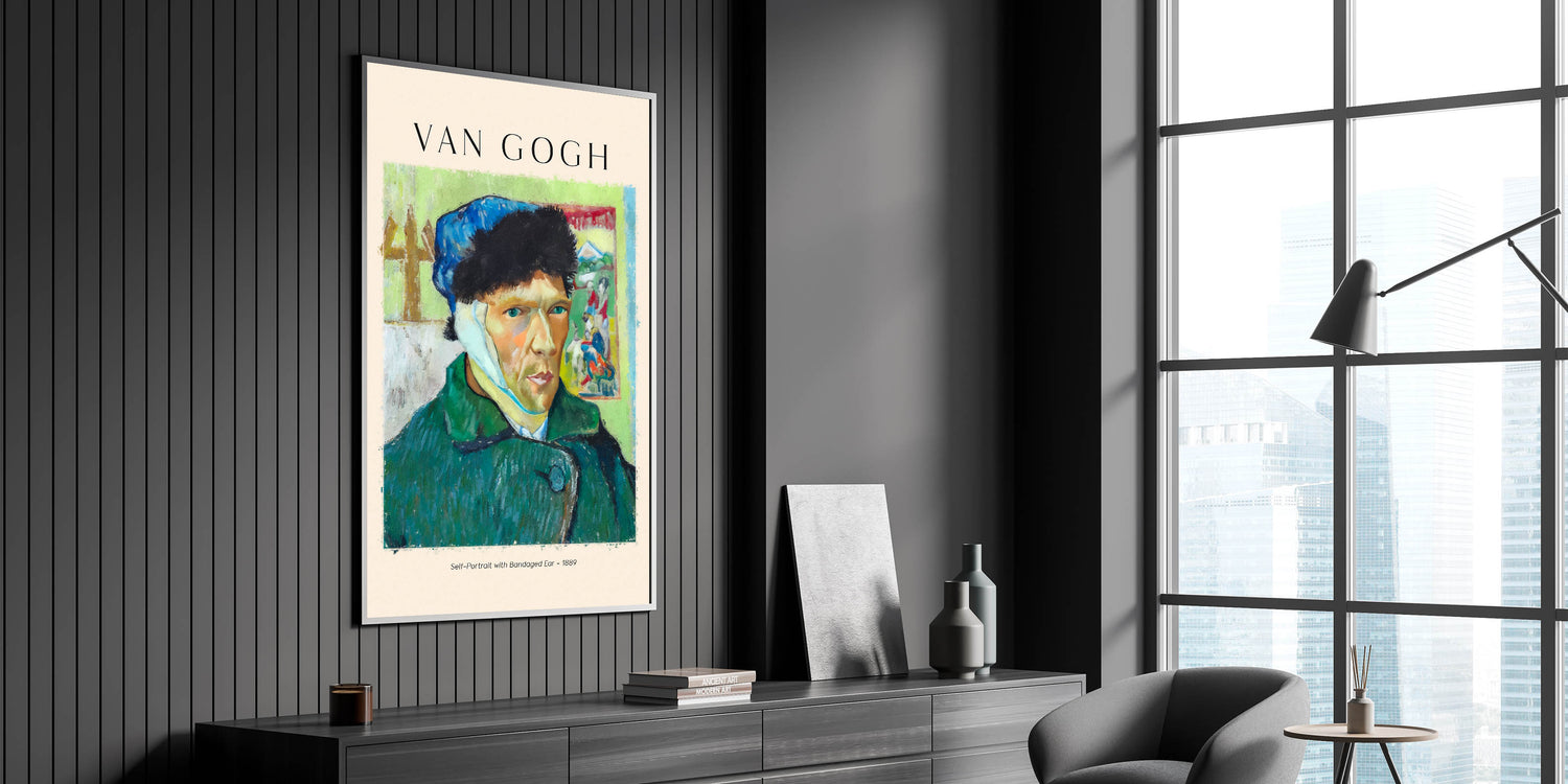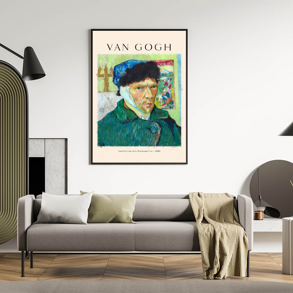 This iconic Vincent van Gogh Self-Portrait with Bandaged Ear from 1889 captures the vulnerability and resilience of one of history’s greatest artists. This Van Gogh canvas print brings a powerful narrative to life, reflecting Van Gogh's emotional struggles and brilliance as a painter. The rich textures and vivid color palette make this piece a standout addition to any art lover's home, office, or gallery.
