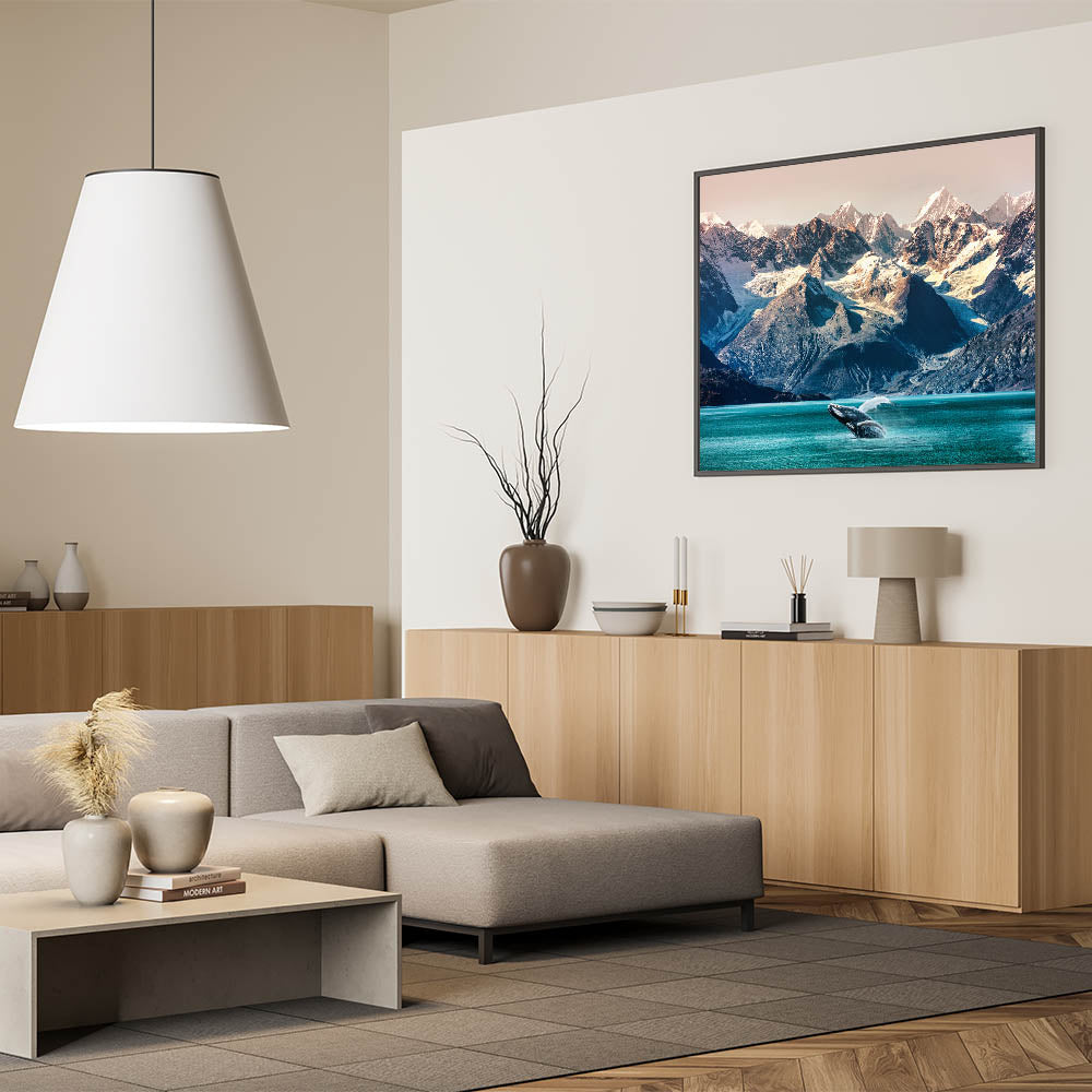 This mountain and whale canvas art is more than just decor; it's a statement piece that brings the majesty of the outdoors into your living space. Perfect for nature lovers and art enthusiasts alike, this piece will elevate any room with its breathtaking scenery.