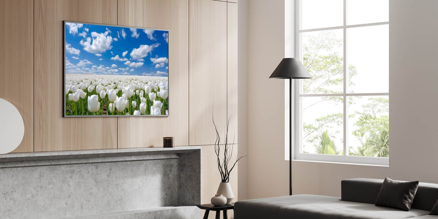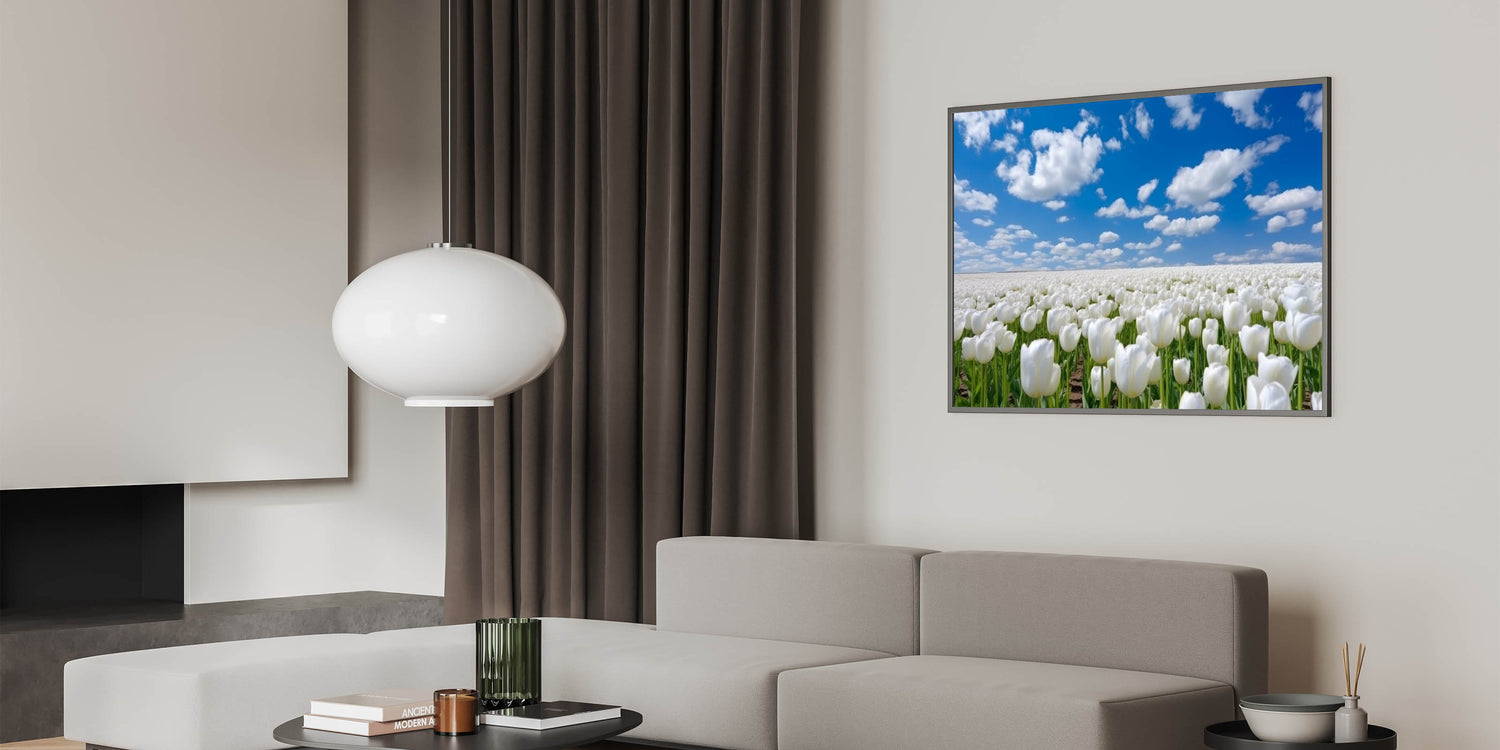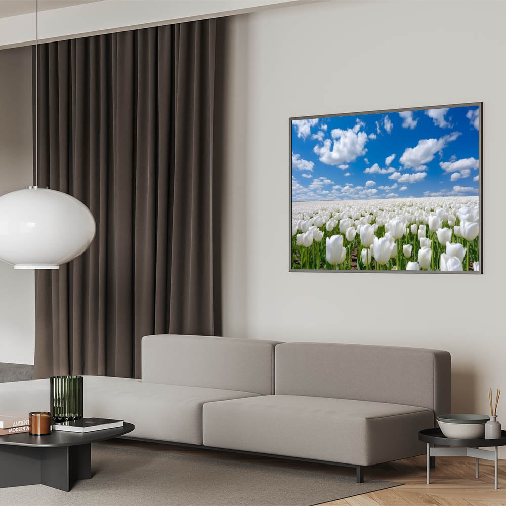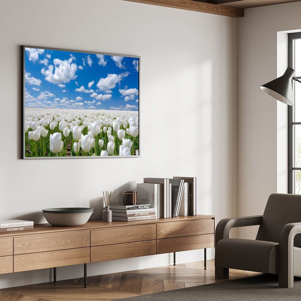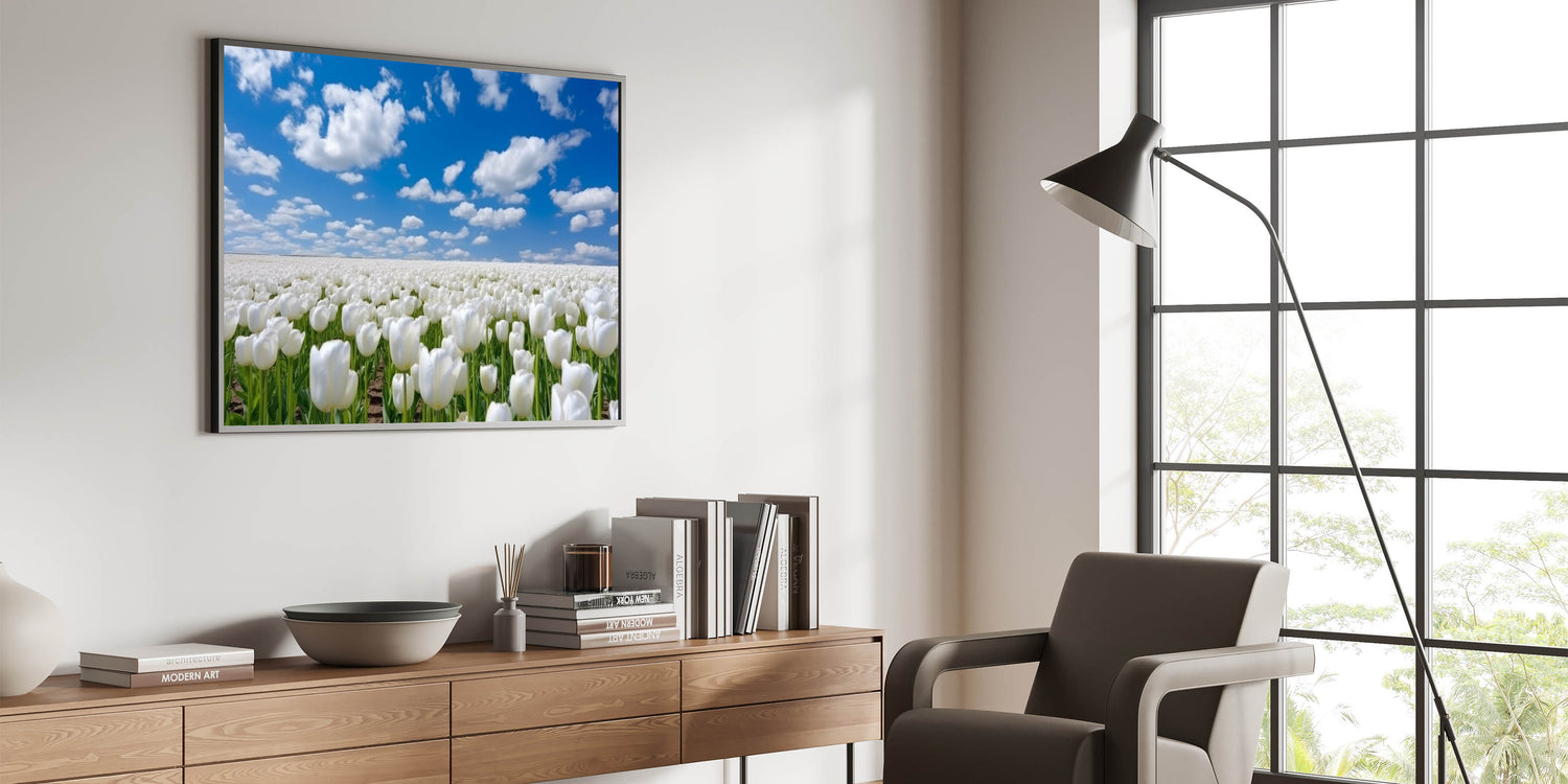White Tulip Field Wall Art | Framed Canvas & Acrylic Prints for Home Decor