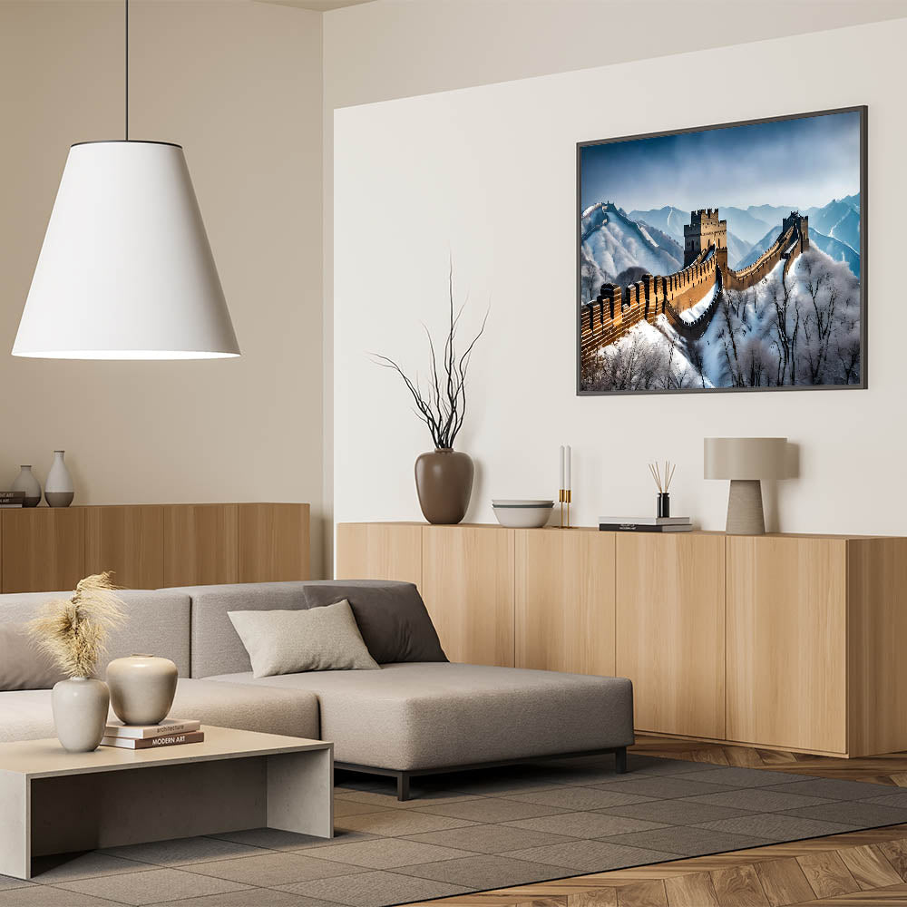 Let this winter Great Wall canvas transform your space into a peaceful, inspiring environment. The combination of the ancient stone structure and the snow-covered landscape creates an art piece that is both timeless and breathtaking.