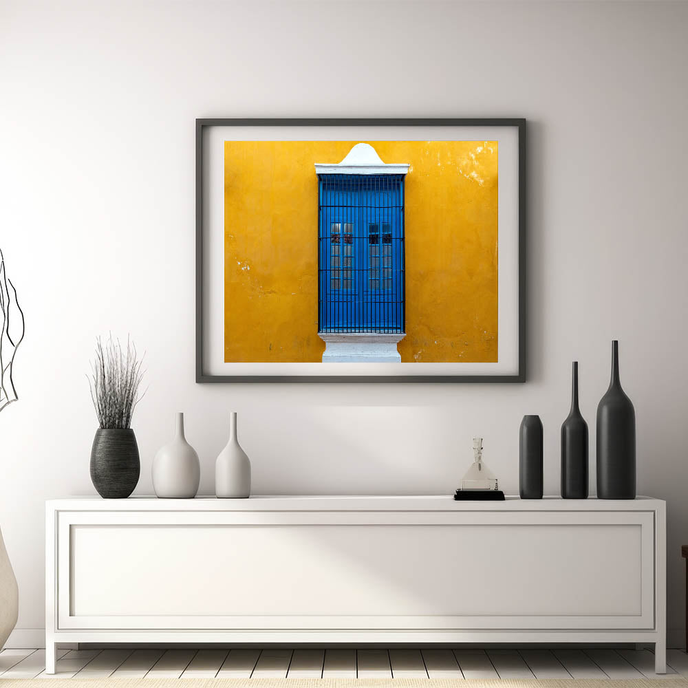 Yellow and Blue Yucatan Window Scene - Mexico Yucatan Wall Art Print