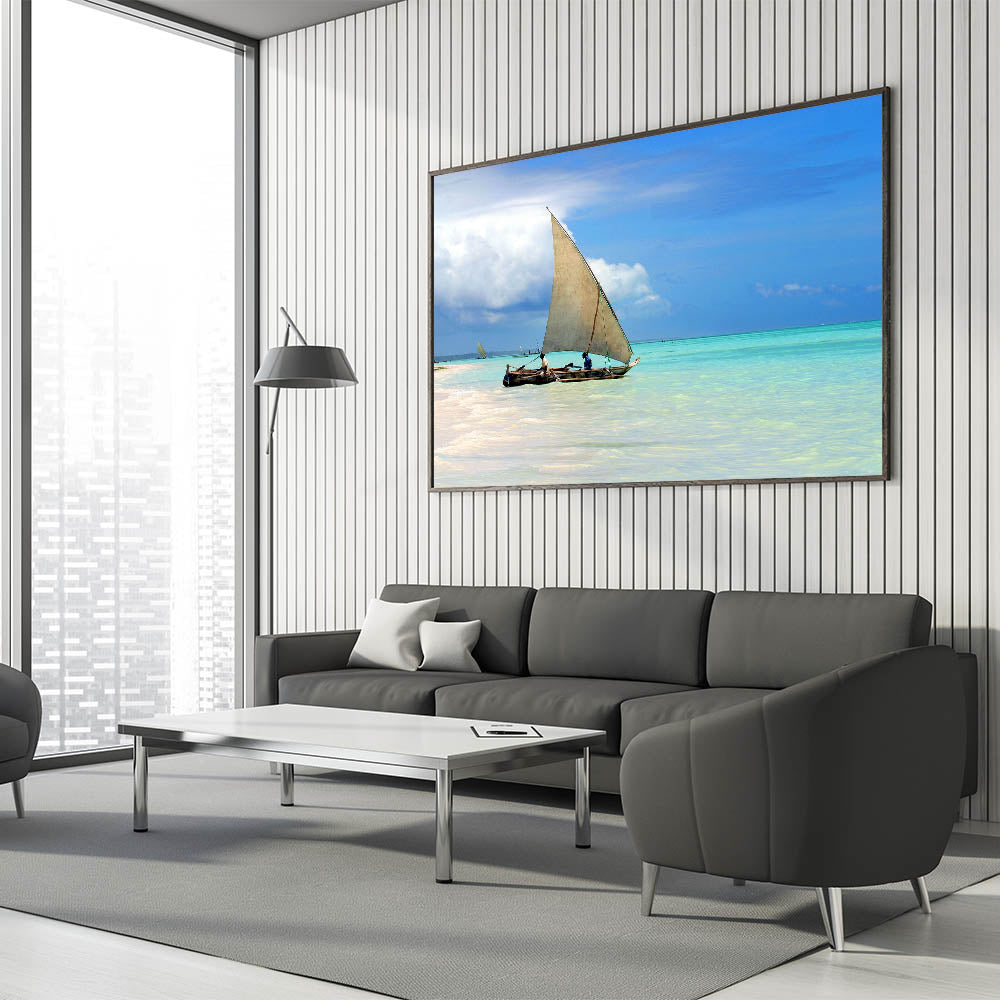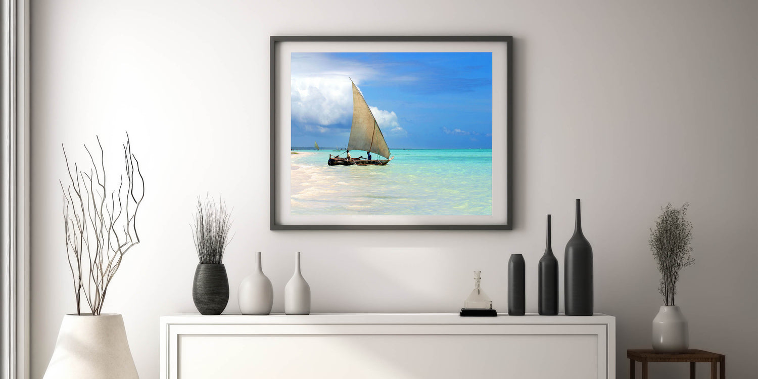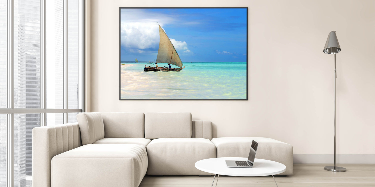 This captivating piece of Tanzania's Zanzibar coast will transport you to the shores of Africa. Whether you choose a canvas print or an acrylic glass format, this wall art will make a stunning addition to your decor, bringing a calm and refreshing ambiance to any setting.
