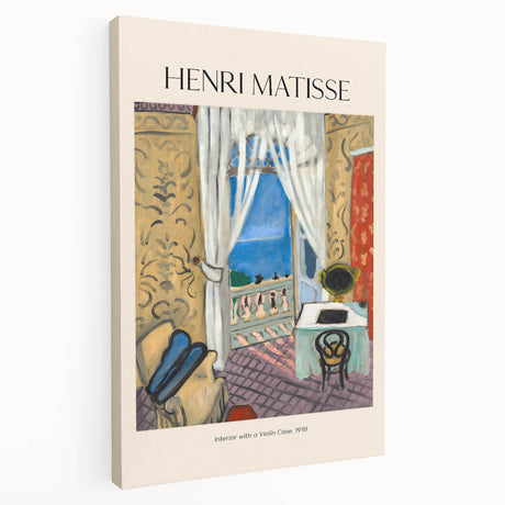 • Abstract Henri Matisse-inspired artwork on stretched canvas featuring bold primary colors, ideal for kitchen wall art.