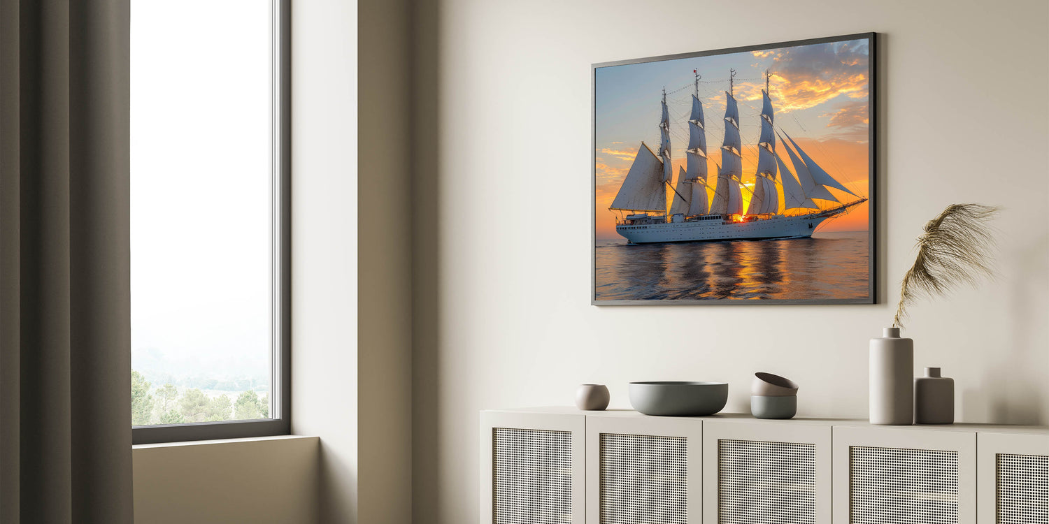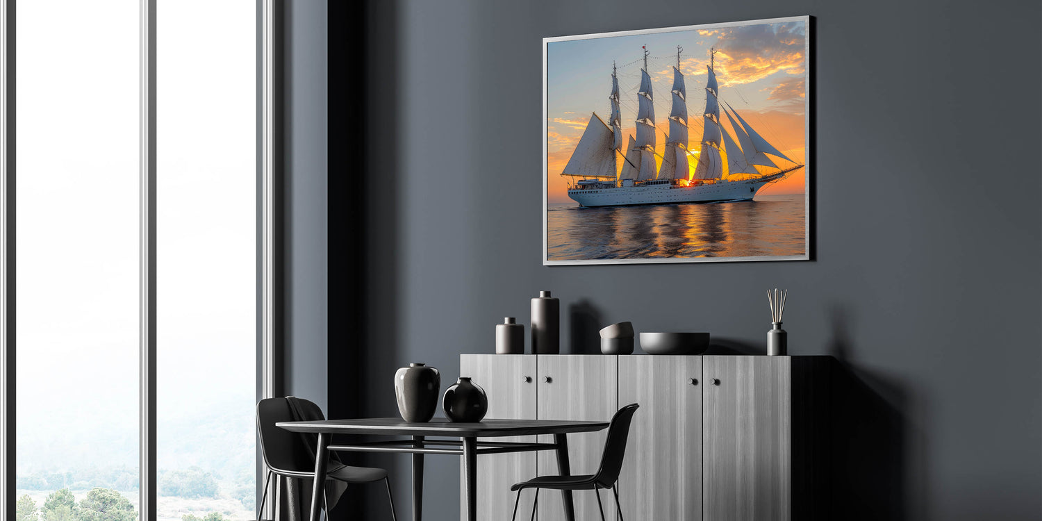 Whether you're drawn to the elegance of sailing or simply appreciate the breathtaking beauty of a sunset, the "Golden Horizon Sail" wall art is the perfect addition to your decor collection. Let this majestic sailboat bring a touch of golden serenity to your space.