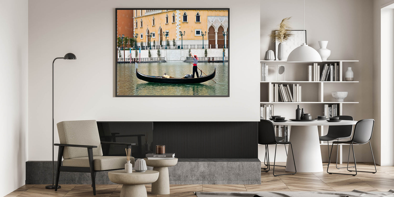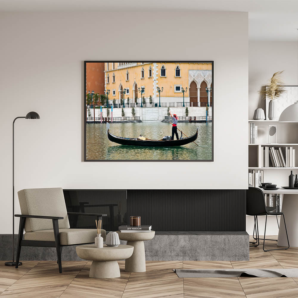 Capture the timeless charm of Venice with this stunning gondola wall art. Featuring a beautifully crafted gondola gliding through the tranquil Venetian canals, this artwork brings the romance and allure of Italy right into your home. The vivid depiction of the gondolier navigating the waterways against the backdrop of classic Venetian architecture adds a touch of elegance and serenity to any space.