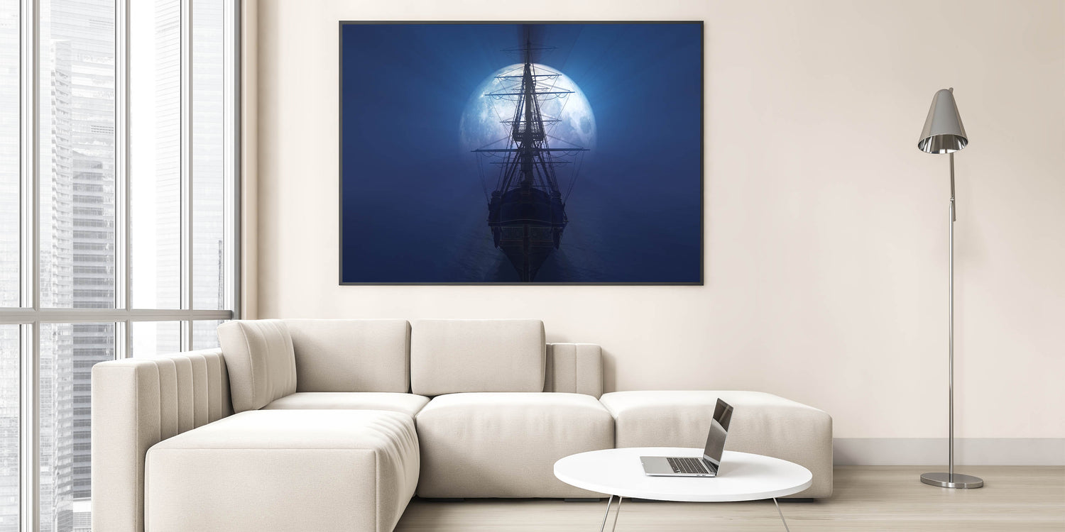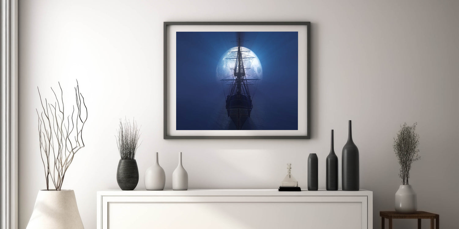 Moonlit Ship Wall Art - Mysterious Nautical Night Voyage Decor