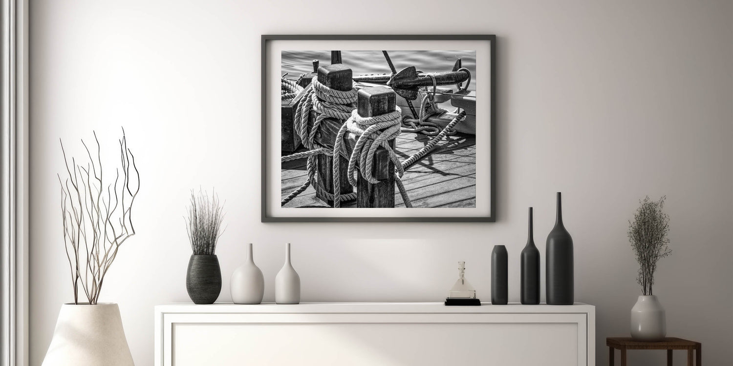 Nautical Ropes and Anchor Wall Art | Black and White Maritime Decor