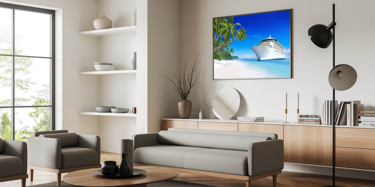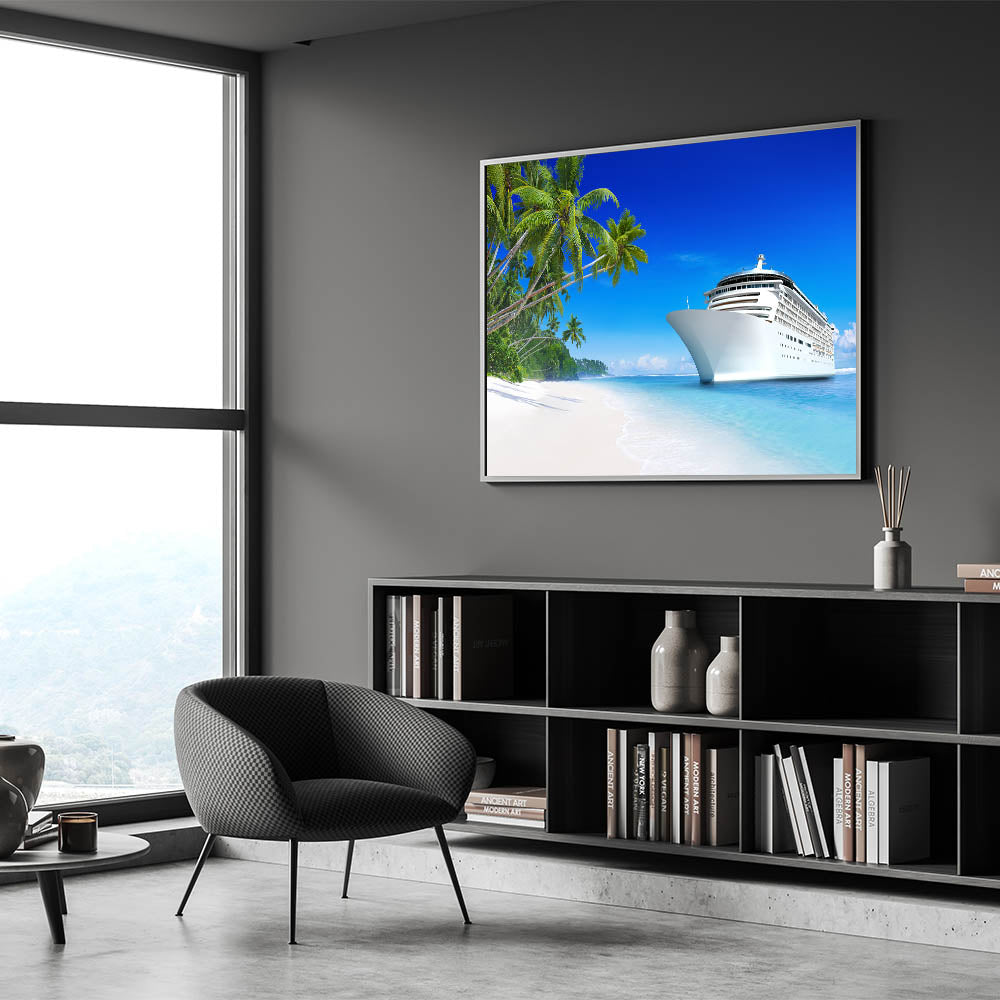 This tropical cruise ship wall art is perfect for those who love the ocean and dream of tropical escapes. It’s a wonderful way to bring a piece of paradise into your home, reminding you of sun-soaked beaches and serene waters.