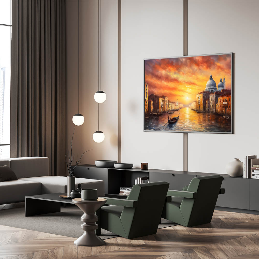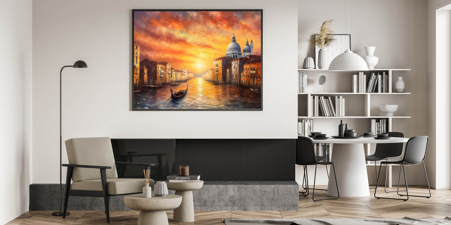 Venetian Sunset Glory: Gondola Wall Art for Vibrant Home Decor