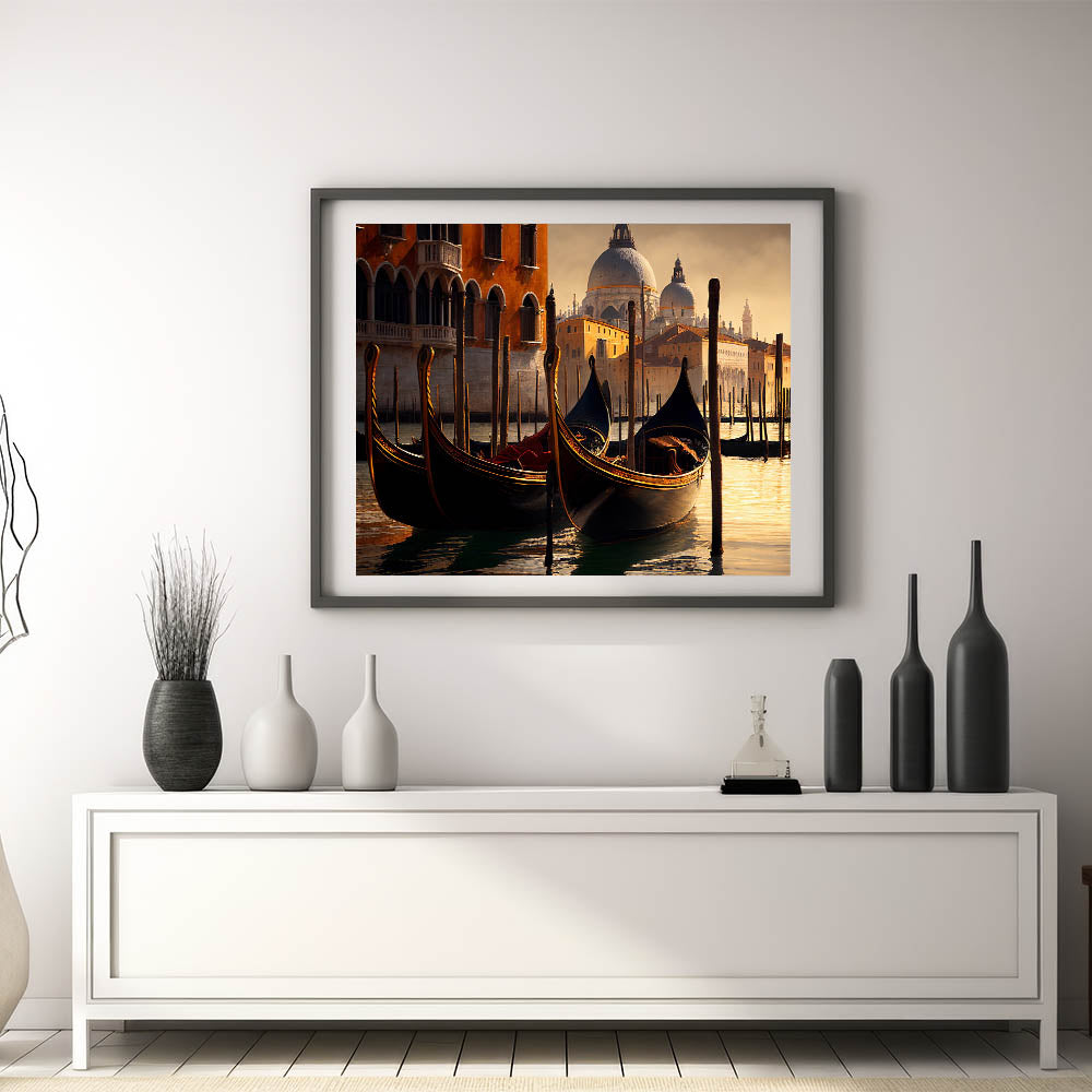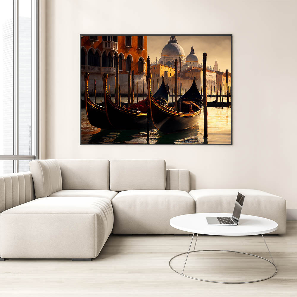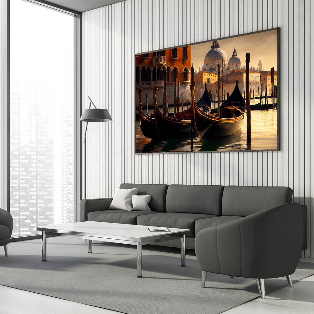 Bring the romantic charm of Venice into your home with this stunning gondola wall art. Featuring a serene scene of gondolas gently floating in the iconic canals of Venice, this artwork beautifully captures the essence of Italy’s enchanting waterways. The warm hues of the sunset create a striking contrast against the historic architecture, making this piece a perfect addition to any space seeking a touch of elegance and tranquility.