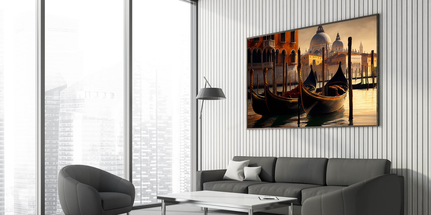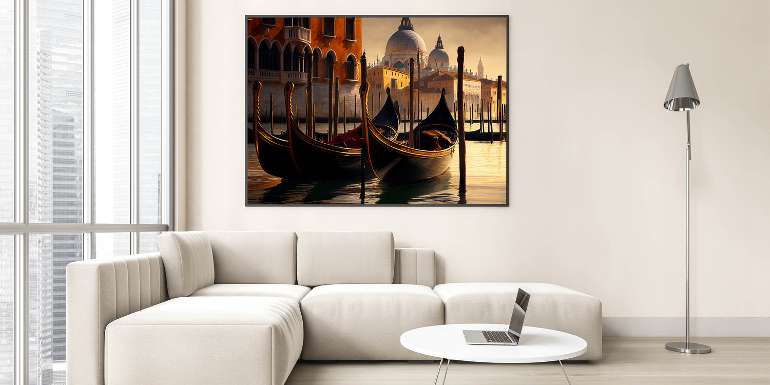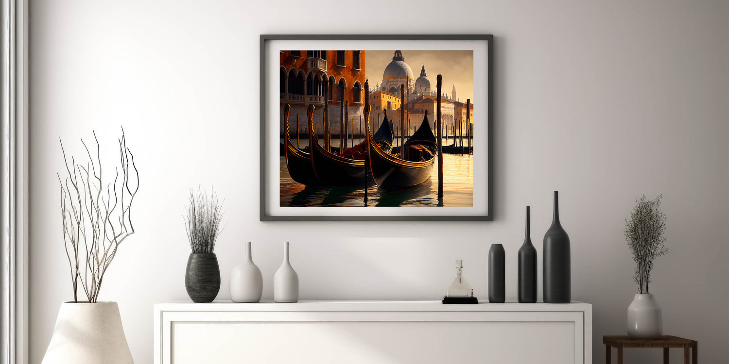 Bring the romantic charm of Venice into your home with this stunning gondola wall art. Featuring a serene scene of gondolas gently floating in the iconic canals of Venice, this artwork beautifully captures the essence of Italy’s enchanting waterways. The warm hues of the sunset create a striking contrast against the historic architecture, making this piece a perfect addition to any space seeking a touch of elegance and tranquility.
