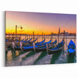 Bring the calming beauty of a Venetian sunset into your home with this stunning gondola wall art. The image captures a row of gondolas gently swaying in the water as the sun sets, casting a golden glow across the sky and water. The vibrant orange and yellow hues of the sunset contrast beautifully with the deep blue gondolas, creating a scene that is both peaceful and full of life. This artwork is perfect for anyone who loves the serene and romantic ambiance of Venice.