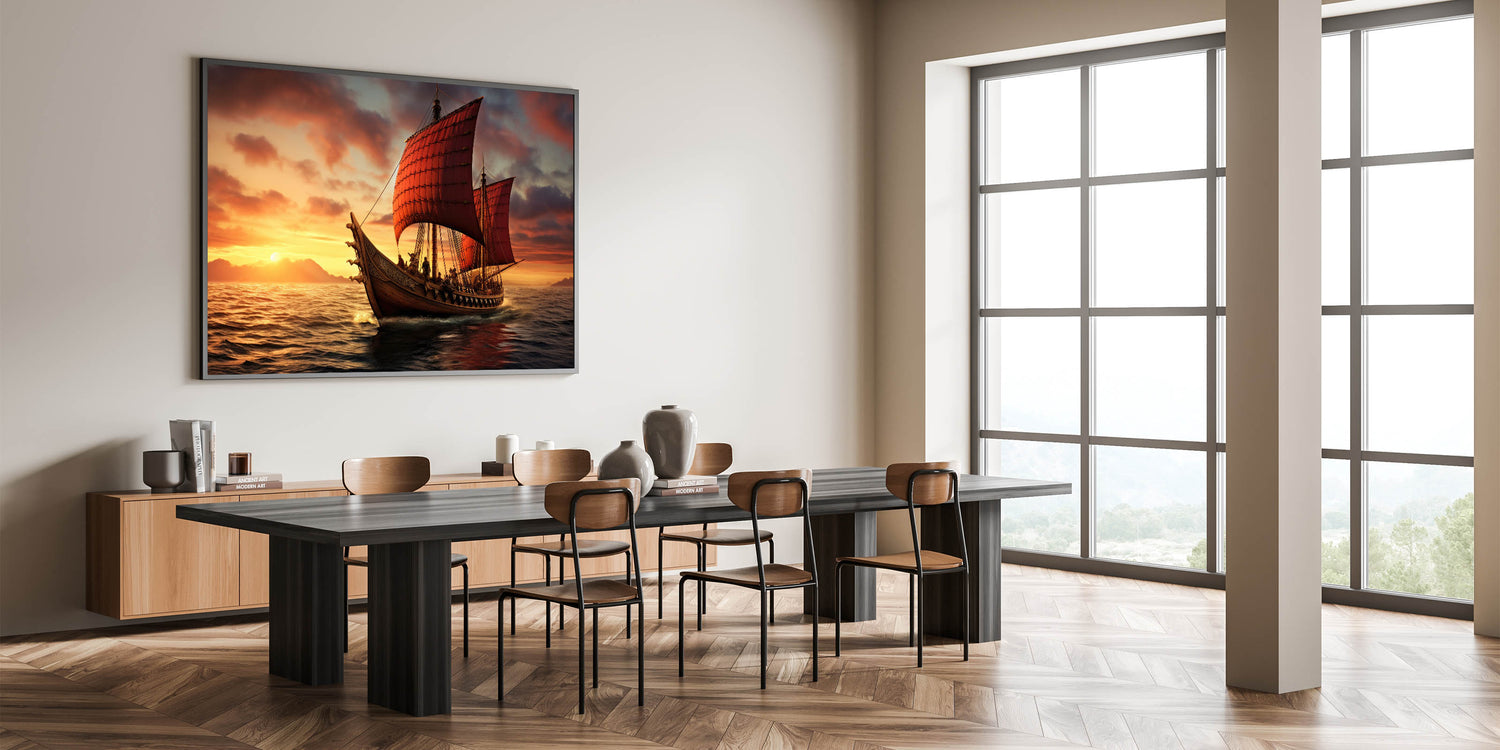 Whether you are a history enthusiast or simply drawn to the bold and adventurous, the "Viking Sunset Voyage" is the perfect addition to your collection. Infuse your space with the energy and courage of the Viking spirit through this stunning nautical artwork.